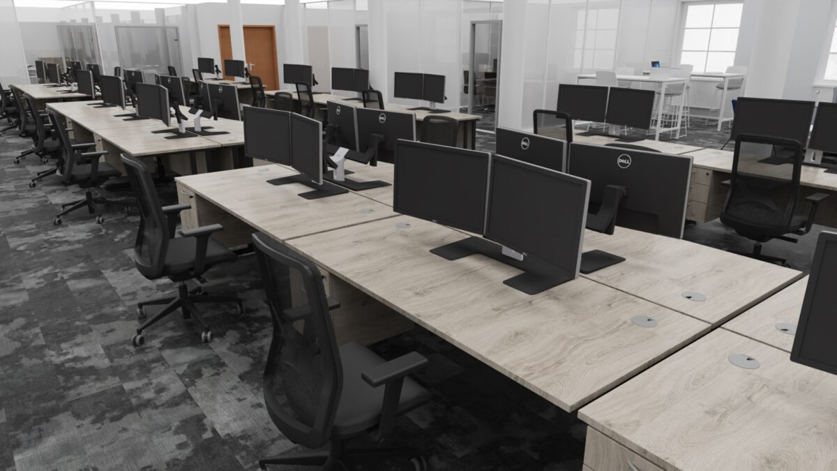We were tasked with outfitting their Jennymount Office in Belfast, creating a workspace that wasn’t just functional, but conducive to collaboration and modern engineering workflows.