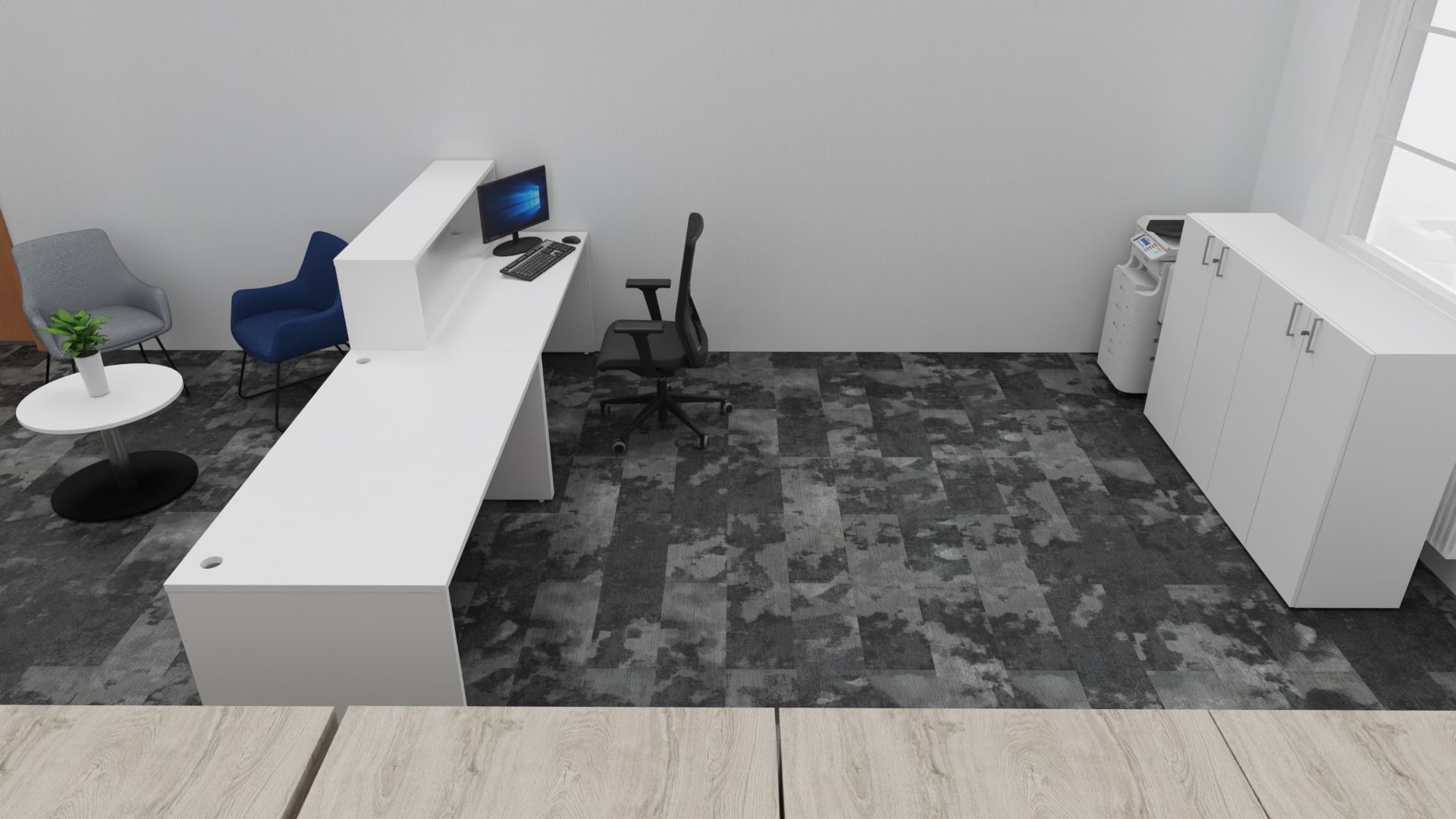 For AM Consulting, we ensured that the flow of the office—from the entrance, past the kitchen, through the open office, and into the private meeting rooms—felt natural. The layout (approx. 1:85 scale planning) was optimized to ensure no space was wasted, yet no one feels cramped.