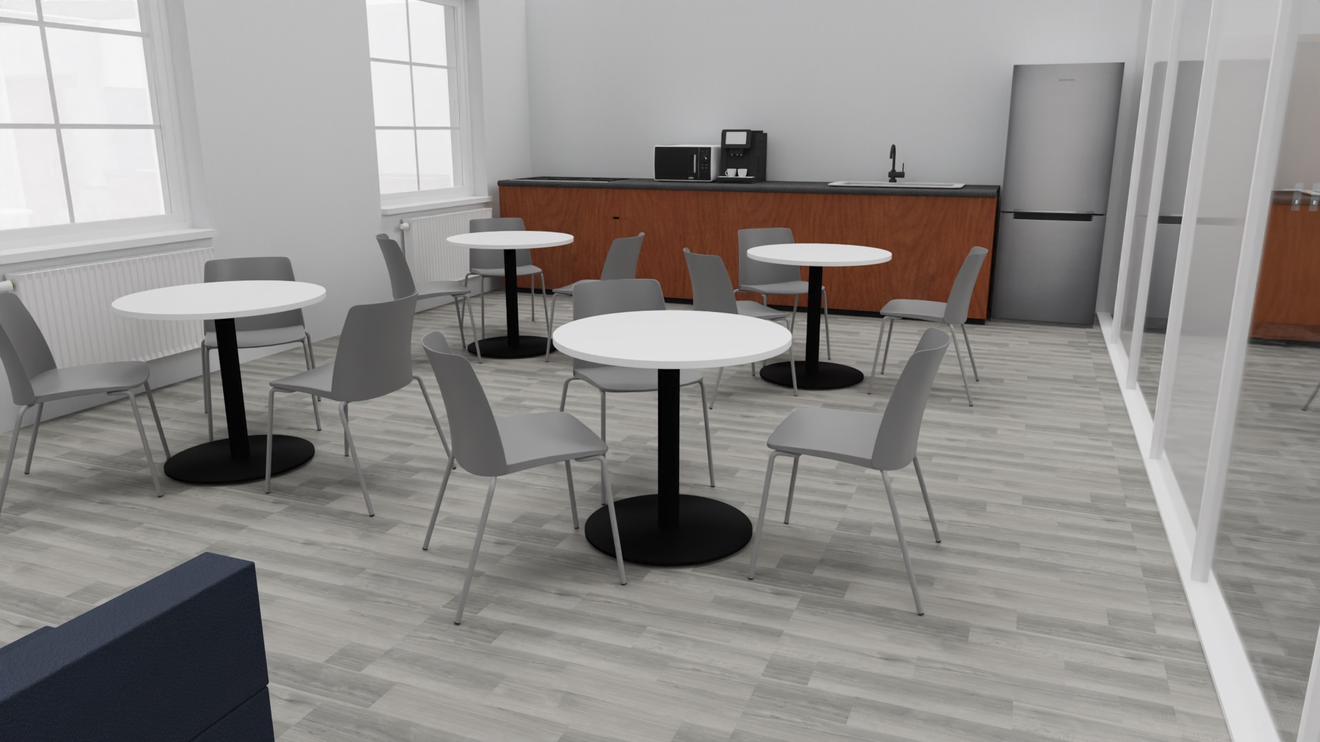 The brief was clear but demanding. We needed to accommodate 24 workstations while maintaining an open, airy feel, alongside dedicated breakout spaces and private offices.