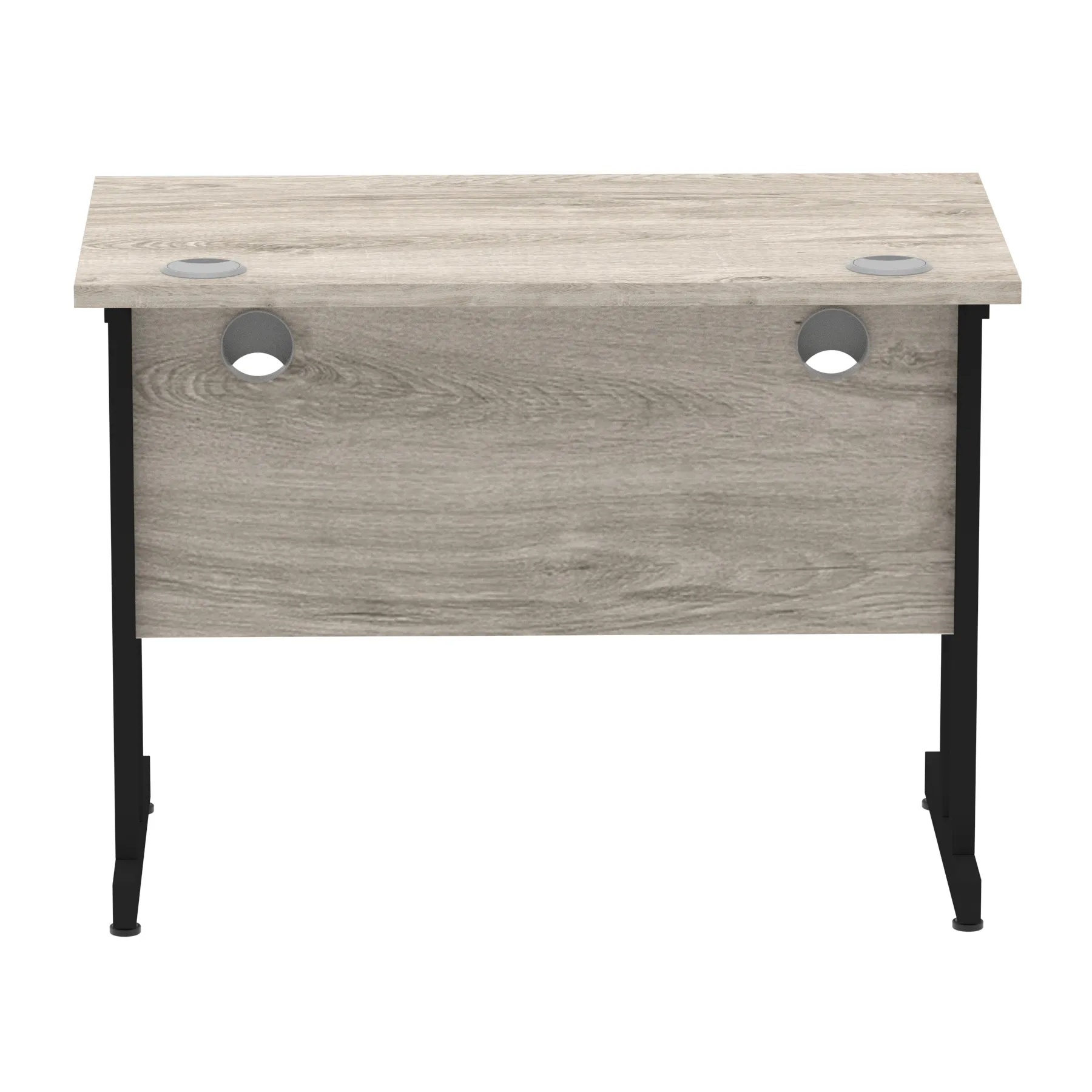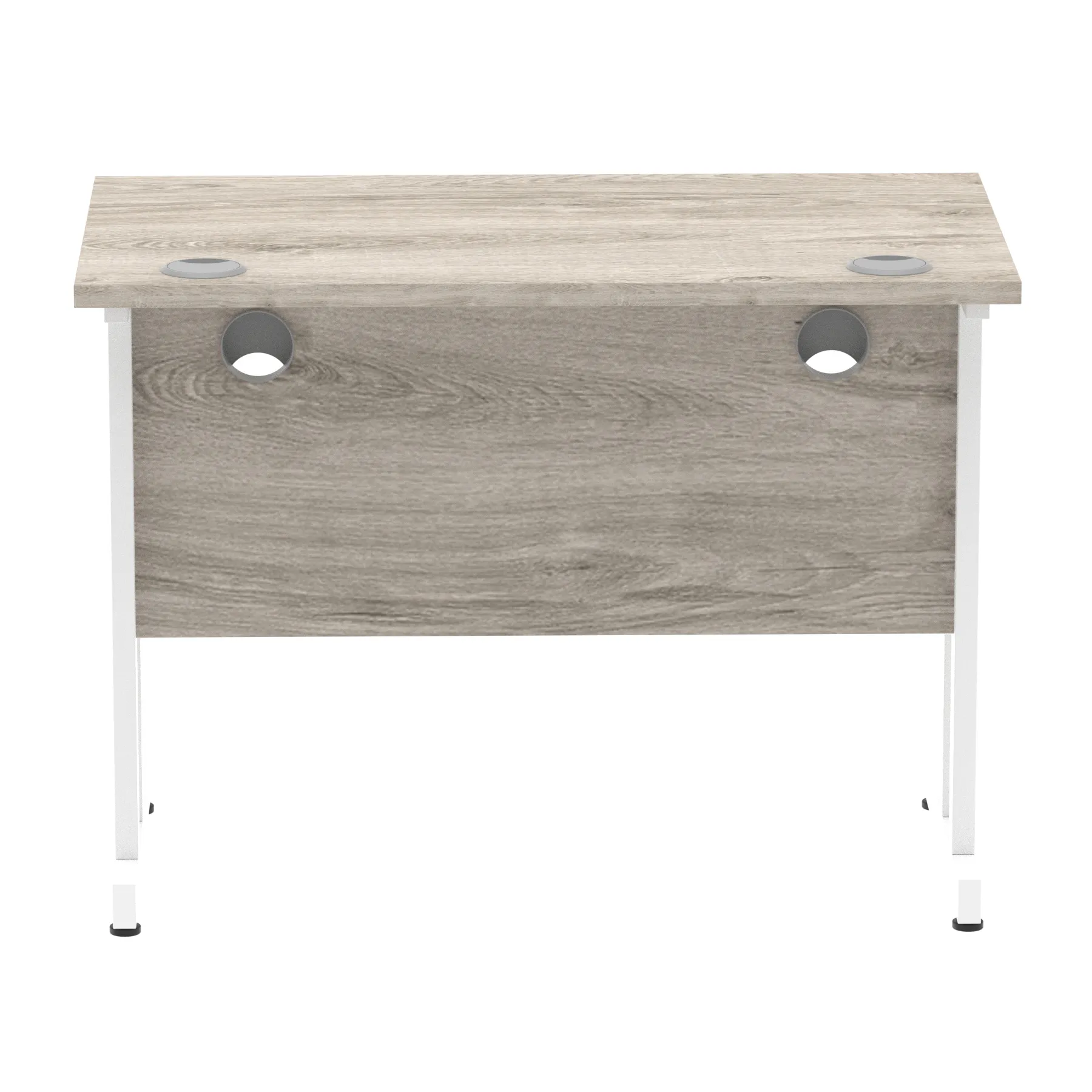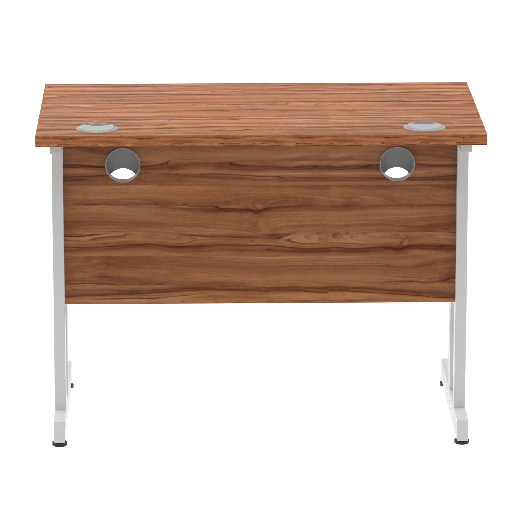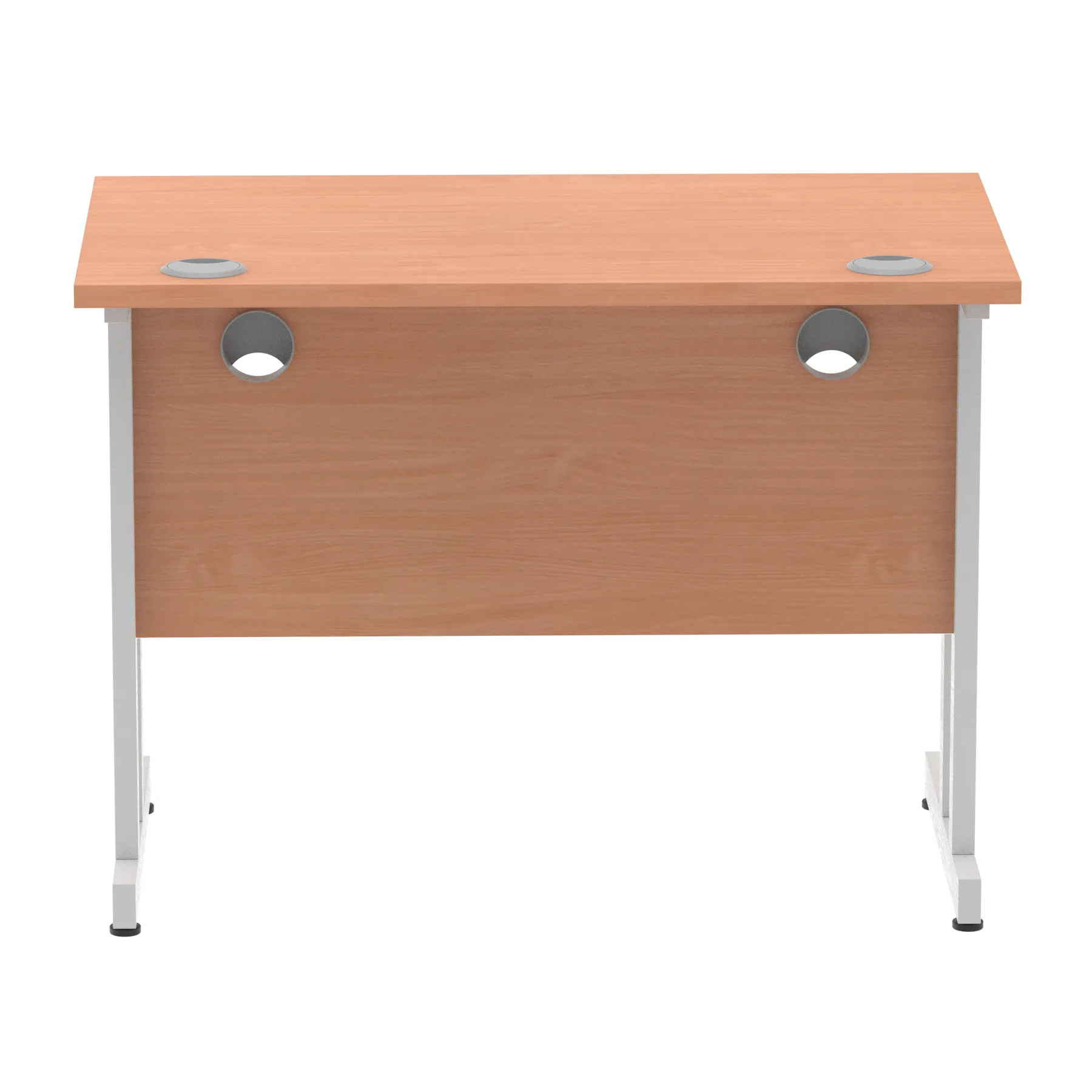 Impulse contract desk | 25mm tops | Heat resistant melamine finish | 18mm modesty panels | 2mm protective abs edging | Double strut legs | 2 cable ports | Height adjustable feet | Steel to steel fixings | 2 modesty panels slots| Deep set modesty panel (5″) allows for compatibility of most screen clamp fittings | Weight Capacity 135Kg