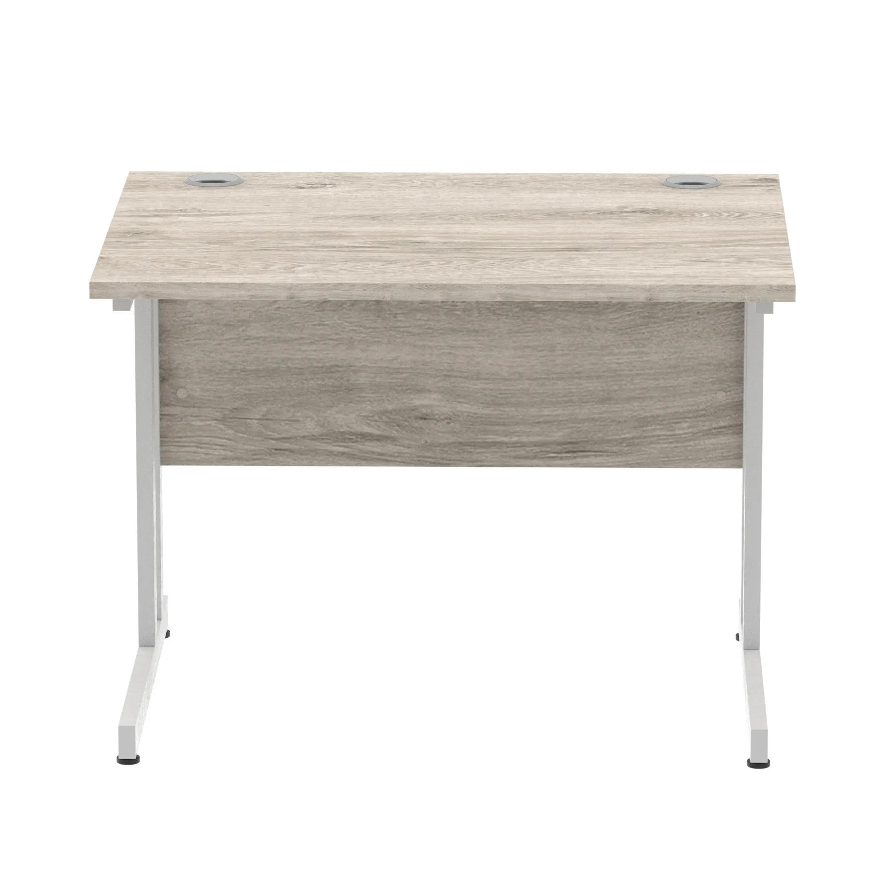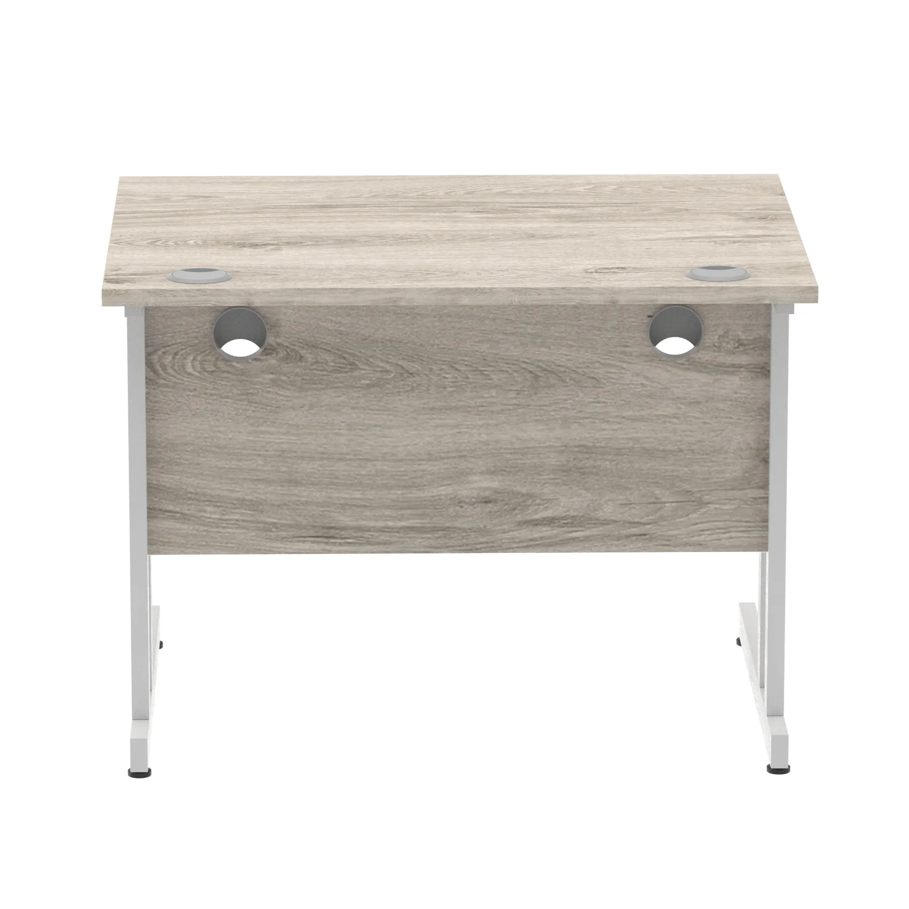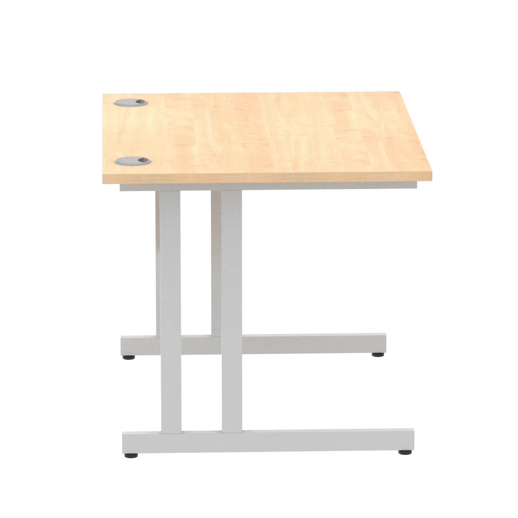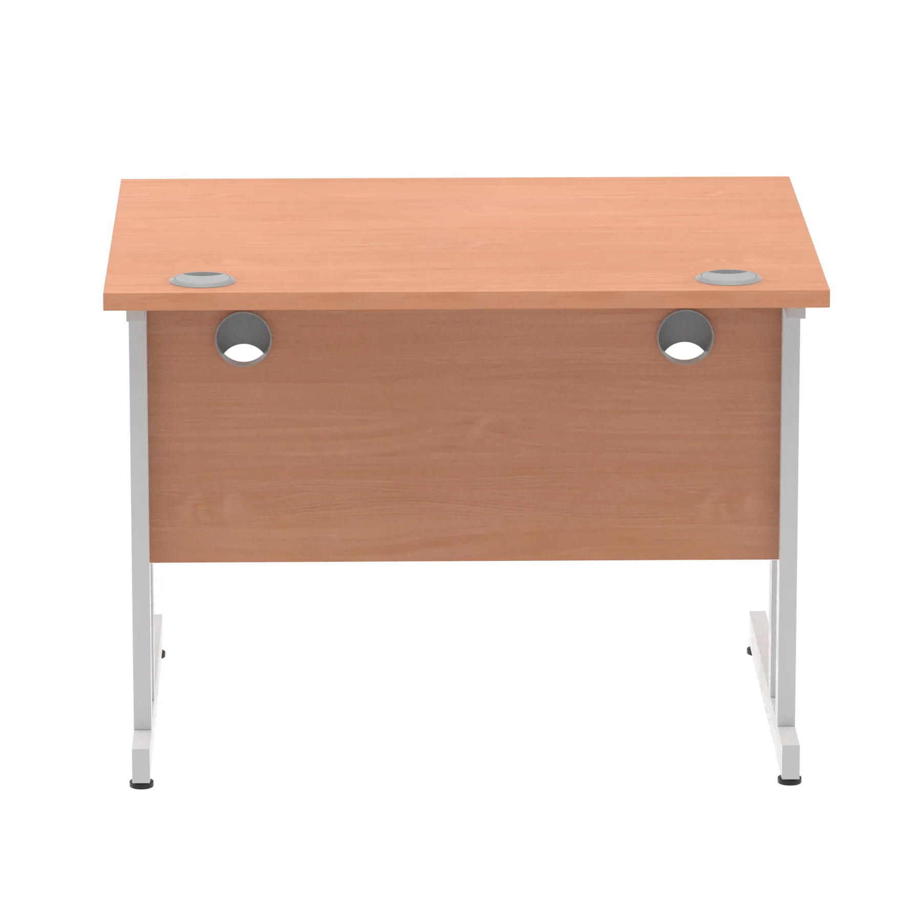Impulse contract desk | 25mm tops | Heat resistant melamine finish | 18mm modesty panels | 2mm protective abs edging | Double strut legs | 2 cable ports | Height adjustable feet | Steel to steel fixings | 2 modesty panels slots| Deep set modesty panel (5″) allows for compatibility of most screen clamp fittings | Weight Capacity 135Kg