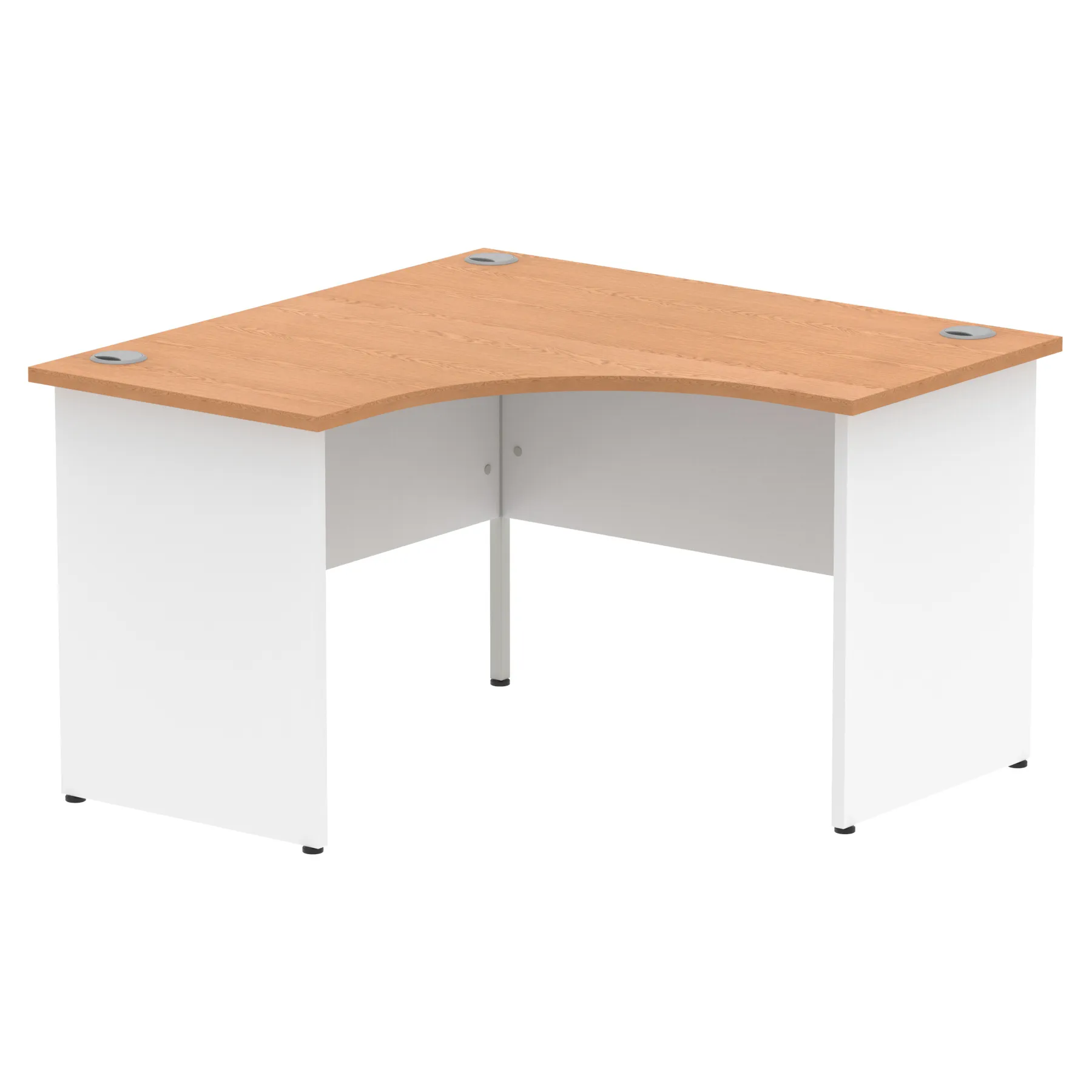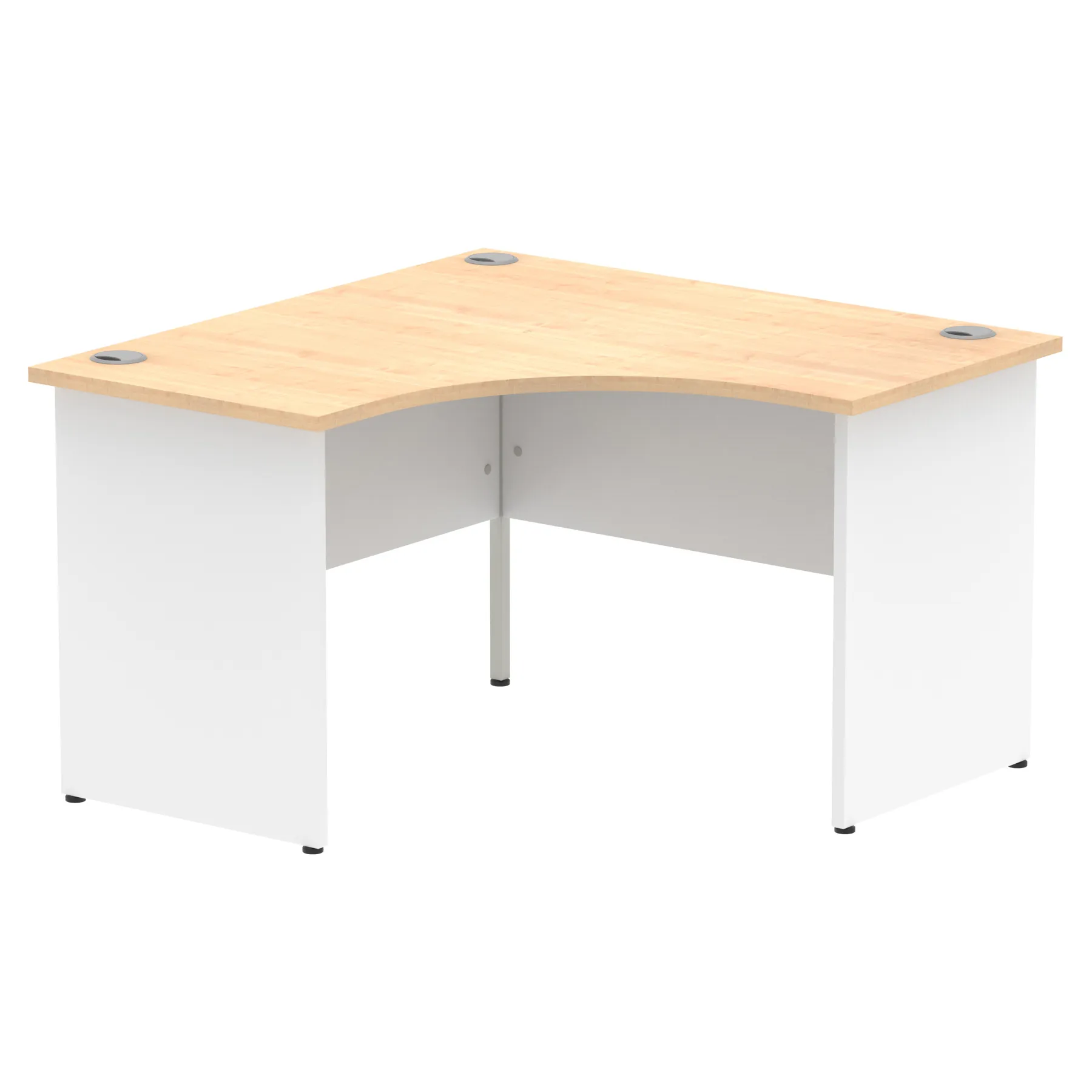 Impulse contract 1200 wide Corner desk | 25mm tops | Heat resistant melamine finish | 18mm modesty panels | 2mm protective abs edging | Panel end legs | 3 cable ports | Height adjustable feet | Steel to steel fixings | 3 modesty panels slots | 600 deep | Deep set modesty panel (5″) allows for compatibility of most screen clamp fittings | Weight Capacity 135Kg