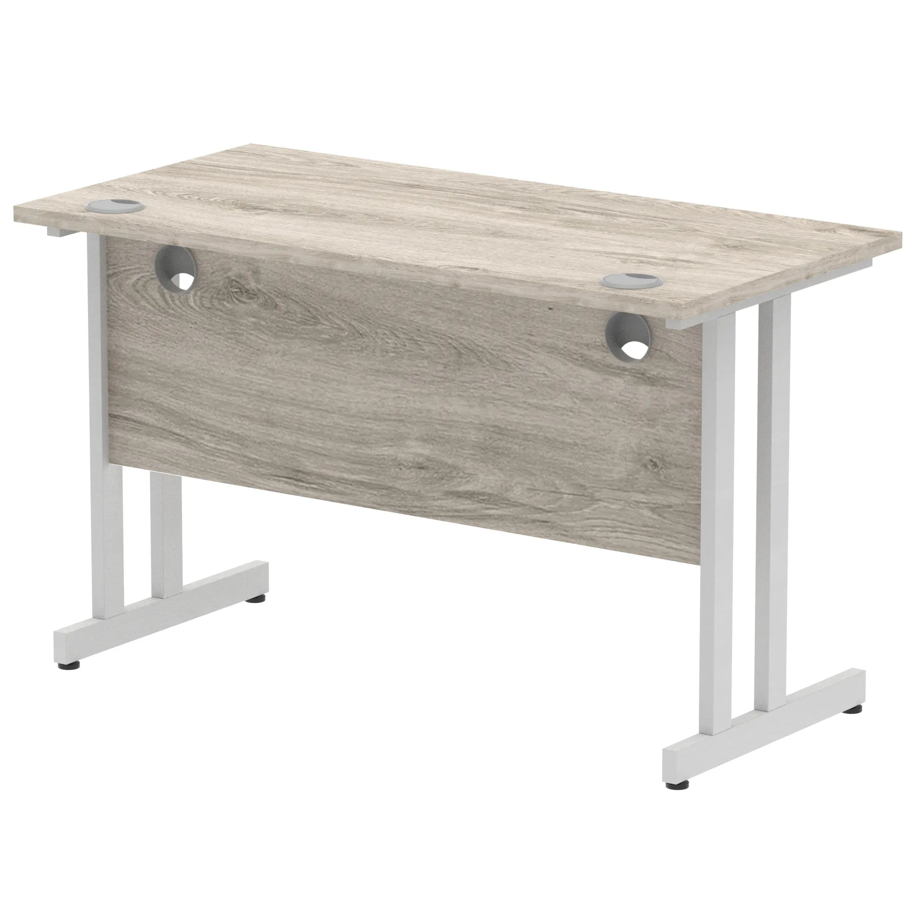Impulse contract desk | 25mm tops | Heat resistant melamine finish | 18mm modesty panels | 2mm protective abs edging | Silver coated double strut legs | 2 cable ports | Height adjustable feet | Steel to steel fixings | 2 modesty panels slots| Deep set modesty panel (5″) allows for compatibility of most screen clamp fittings | Weight Capacity 135Kg