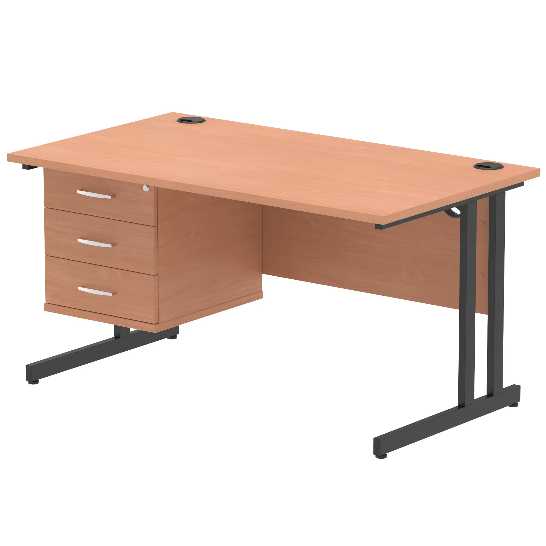 Impulse 1400mm Cantilever Straight Desk With Single Fixed Pedestal