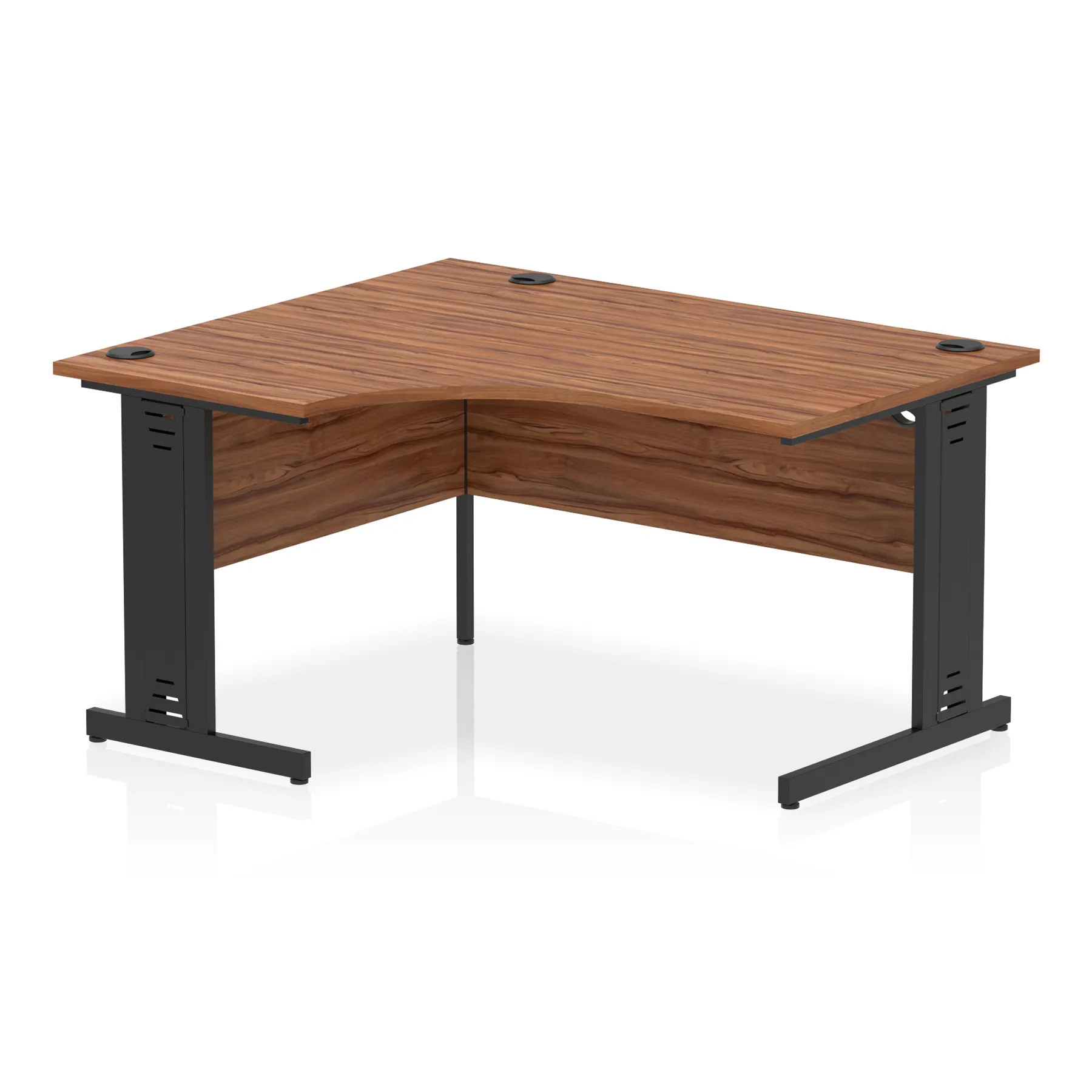 • Impulse contract 1400 wide crescent desk • 25mm tops • Heat resistant melamine finish • 18mm modesty panels • 2mm protective abs edging • Double strut legs • 3 cable ports • Height adjustable feet • Steel to steel fixings • 3 modesty panels slots • 600 deep • Deep set modesty panel (5″) allows for compatibility of most screen clamp fittings • Weight Capacity: 135Kg
