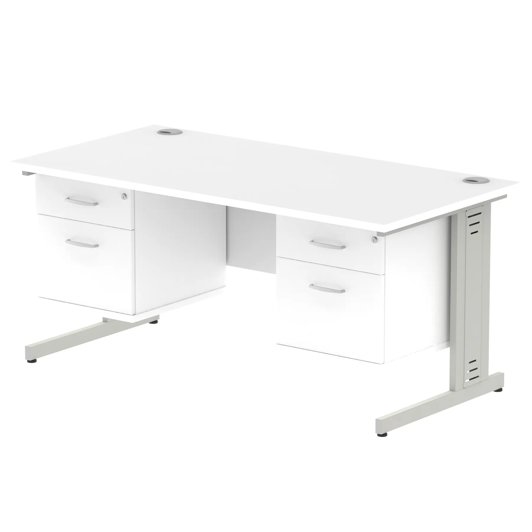 Impulse 1600mm Cable Managed Straight Desk With Two Fixed Pedestal