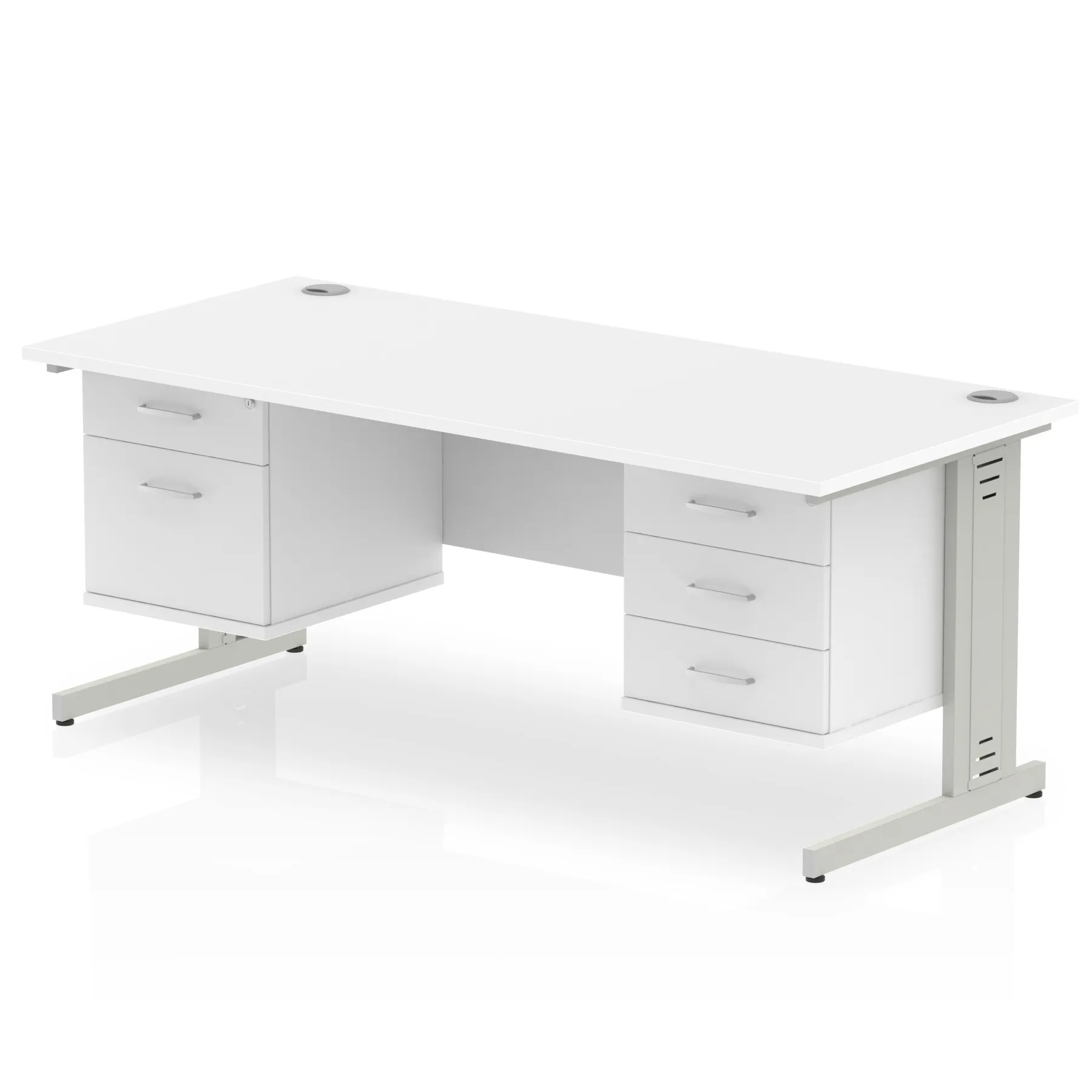 Impulse 1800mm Cable Managed Straight Desk With Two Fixed Pedestal