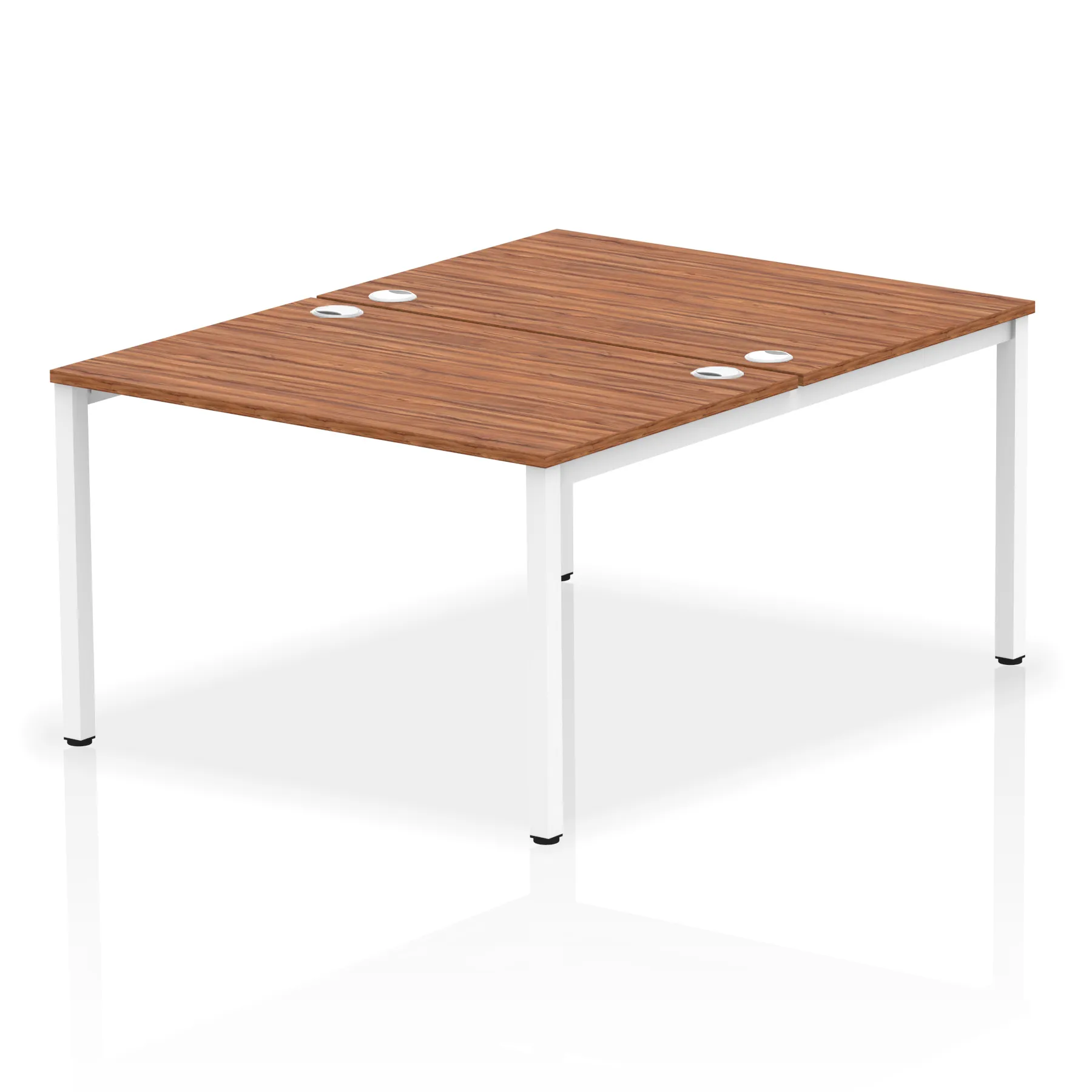 • Conjoinable frame system allows for easy adaptability • Stylish powder coated goal post leg design • Double cable ports for easy cable management • 25mm thick tops with 2mm protective edging • Adjustable Feet • Choice of 7 wood finishes and 3 leg colours • Weight Capacity: 100kg per user