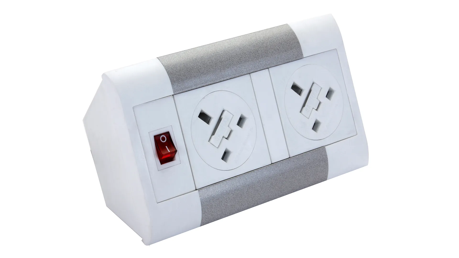Impulse Desktop Module 2 x 5A UK Sockets, 1 x Neon Switch, 1 x 500mm Lead to 3 Pole Connector in White