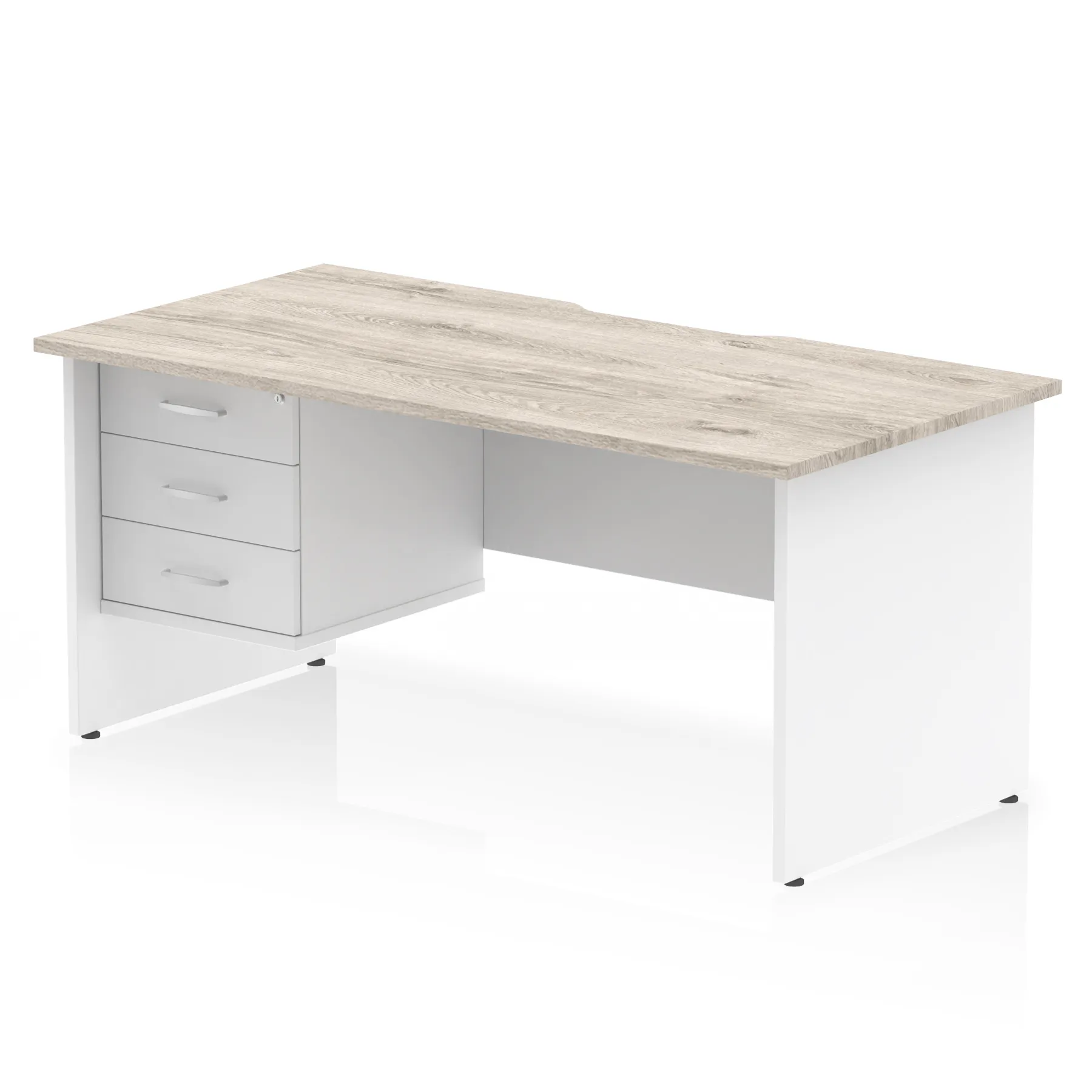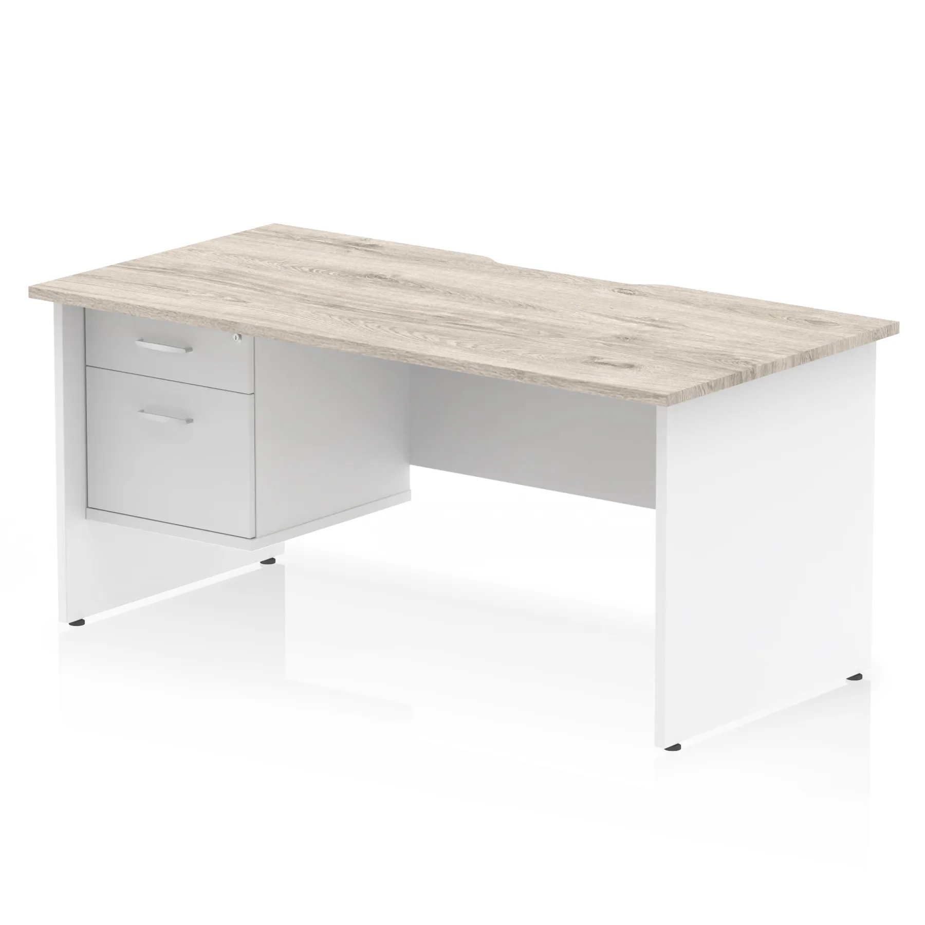 Impulse Scalloped Edge 1600mm Panel End Straight Desk With Single Fixed Pedestal