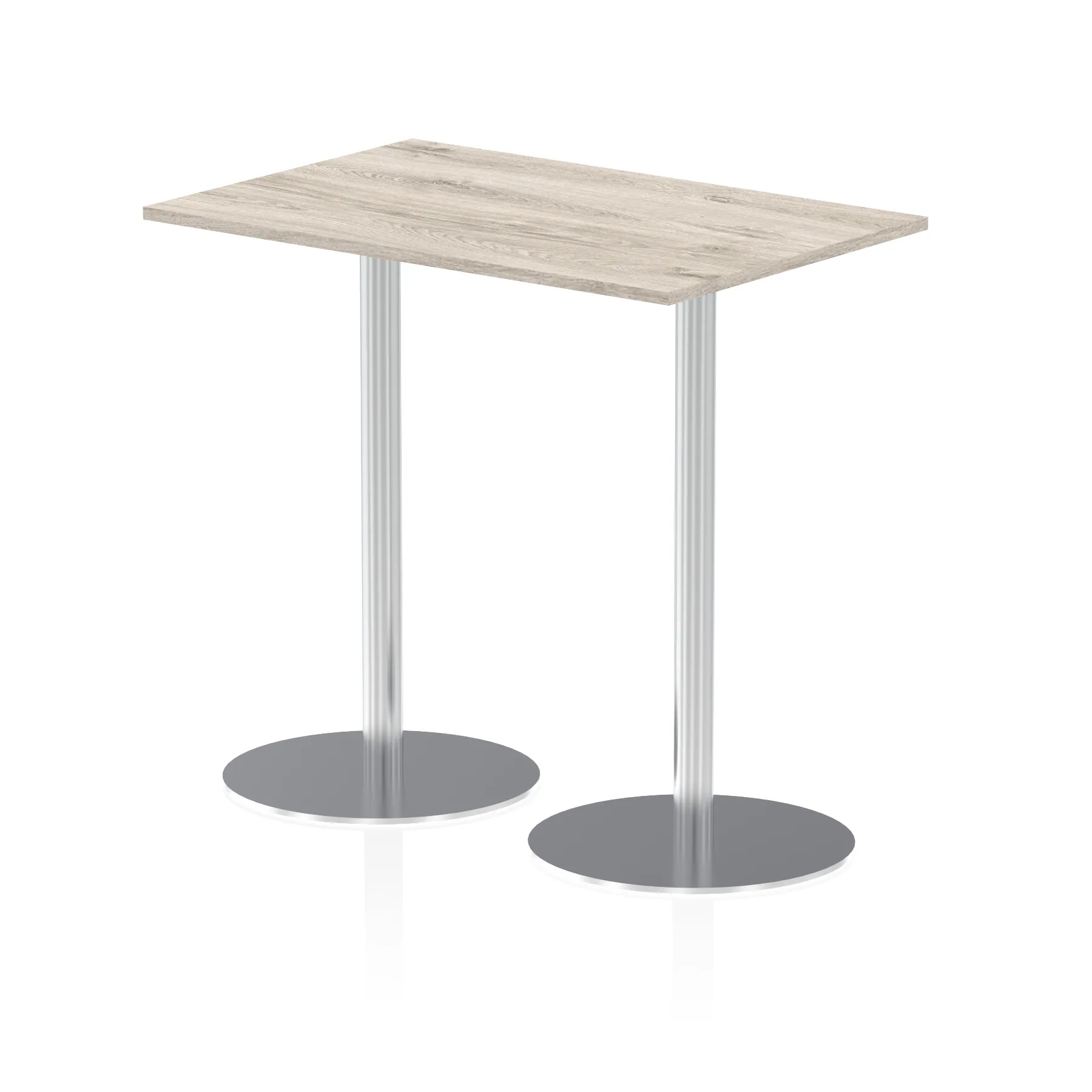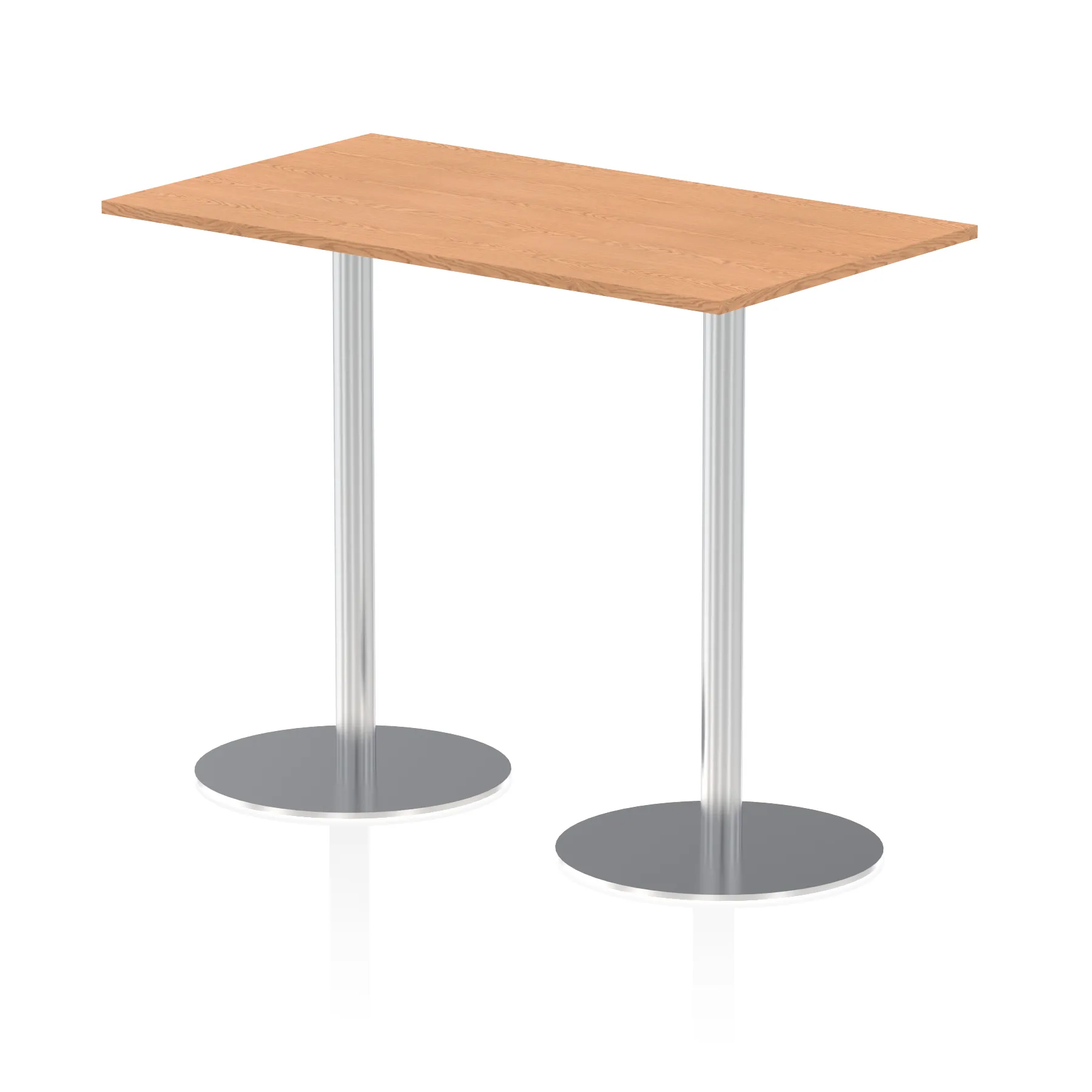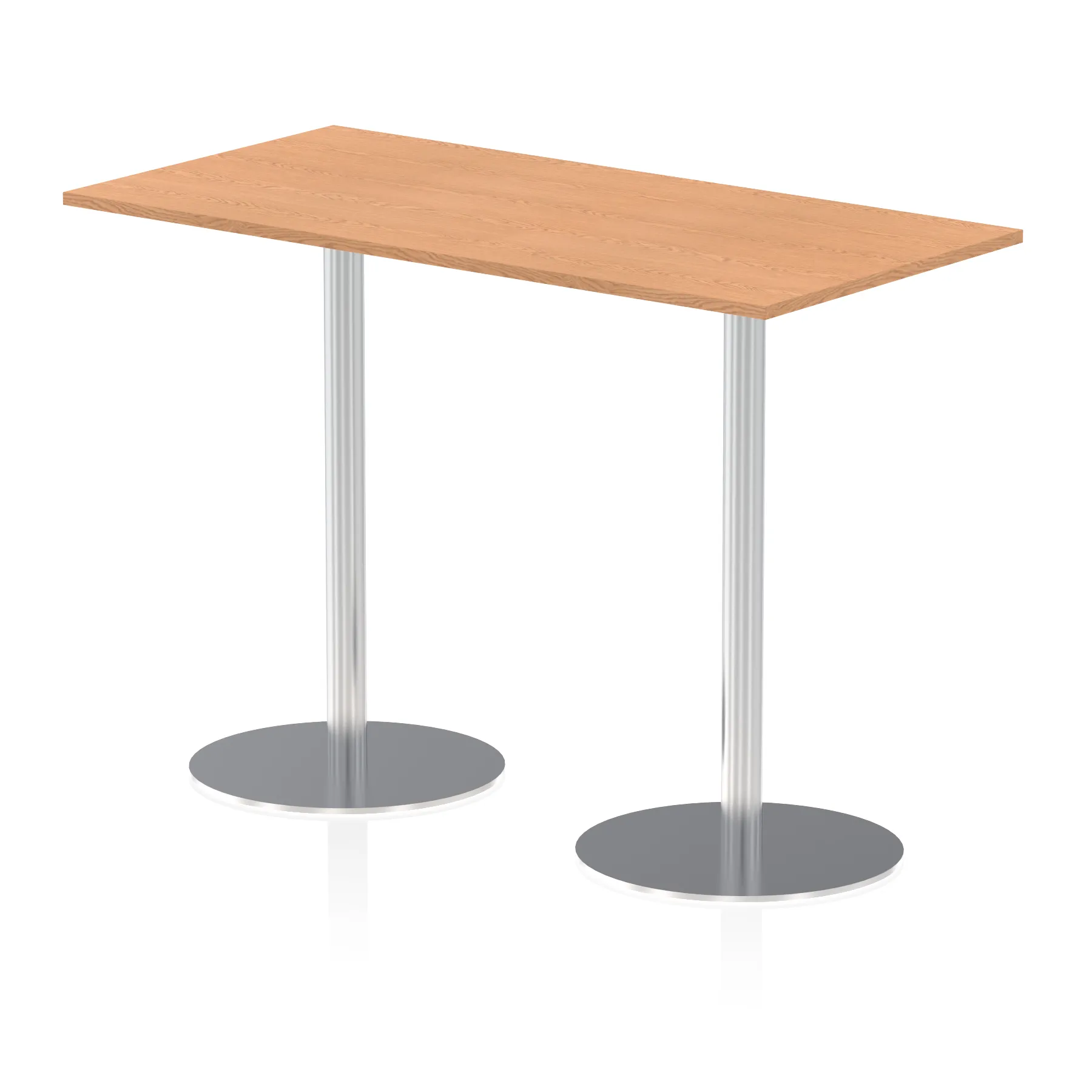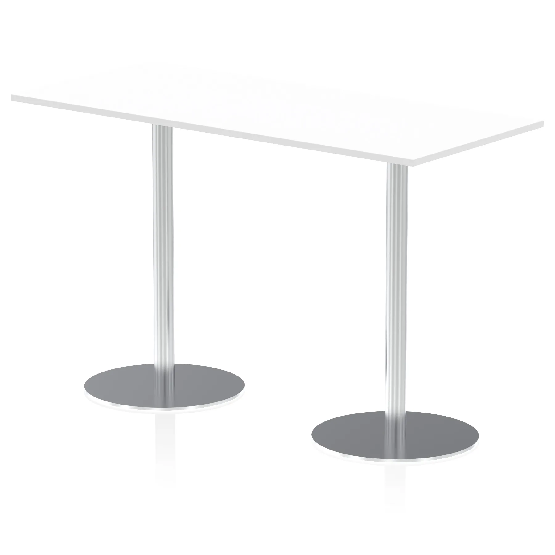 25mm thick desk top profile | Dual, brushed stainless steel effect circular base (580mm diameter) | Brushed stainless steel pillars (76mm diameter) | Weighted base provides stability | Two part bolted frame system