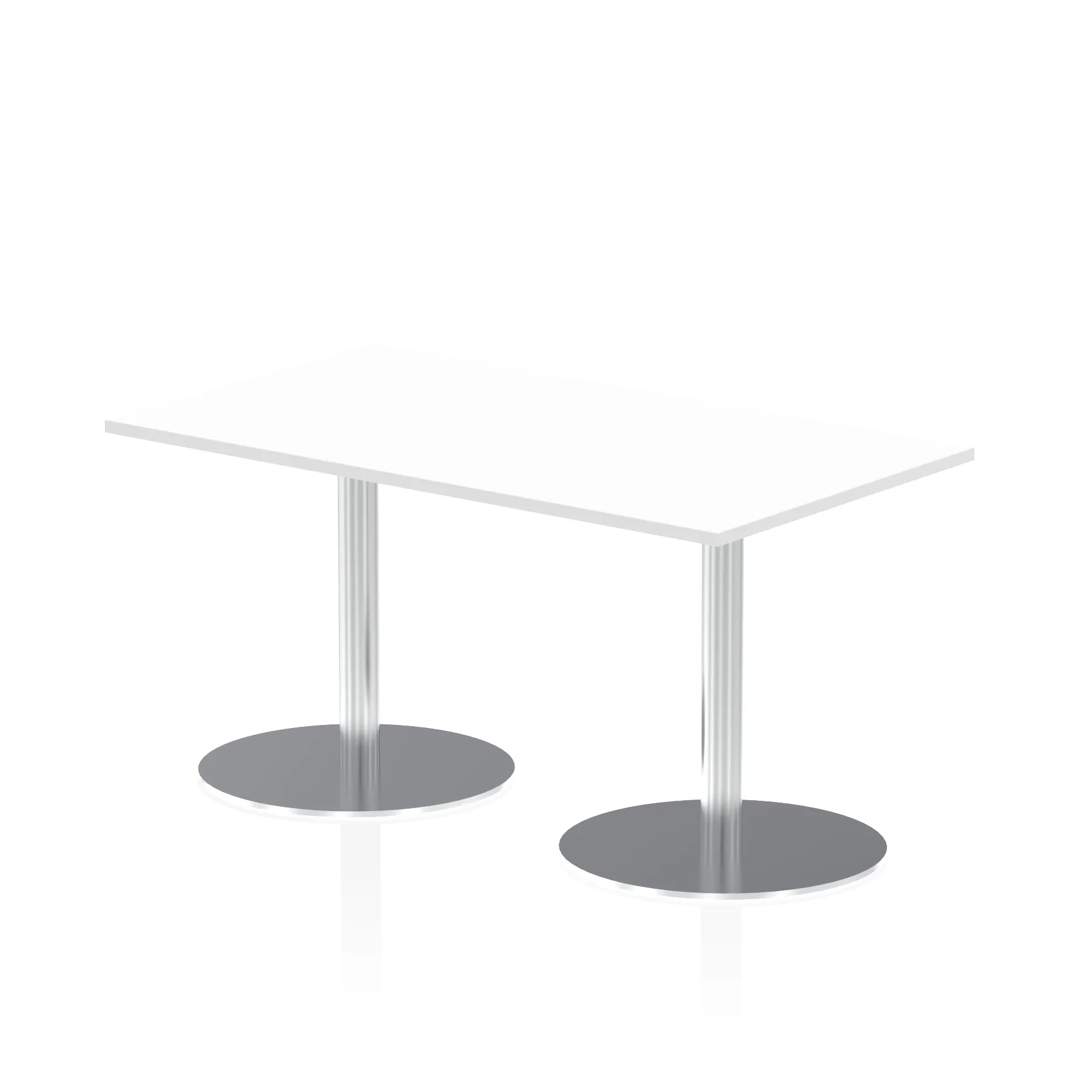 Italia is the ultimate style statement – whether for meetings, conferences, boardrooms or dining areas. This table is topped by the clean lines of a heatproof, clean looking melamine worktop that requires minimum maintenance. Underneath the brushed steel trumpet base and post design looks striking and has the practicality of eliminating any knee and leg traps underneath.