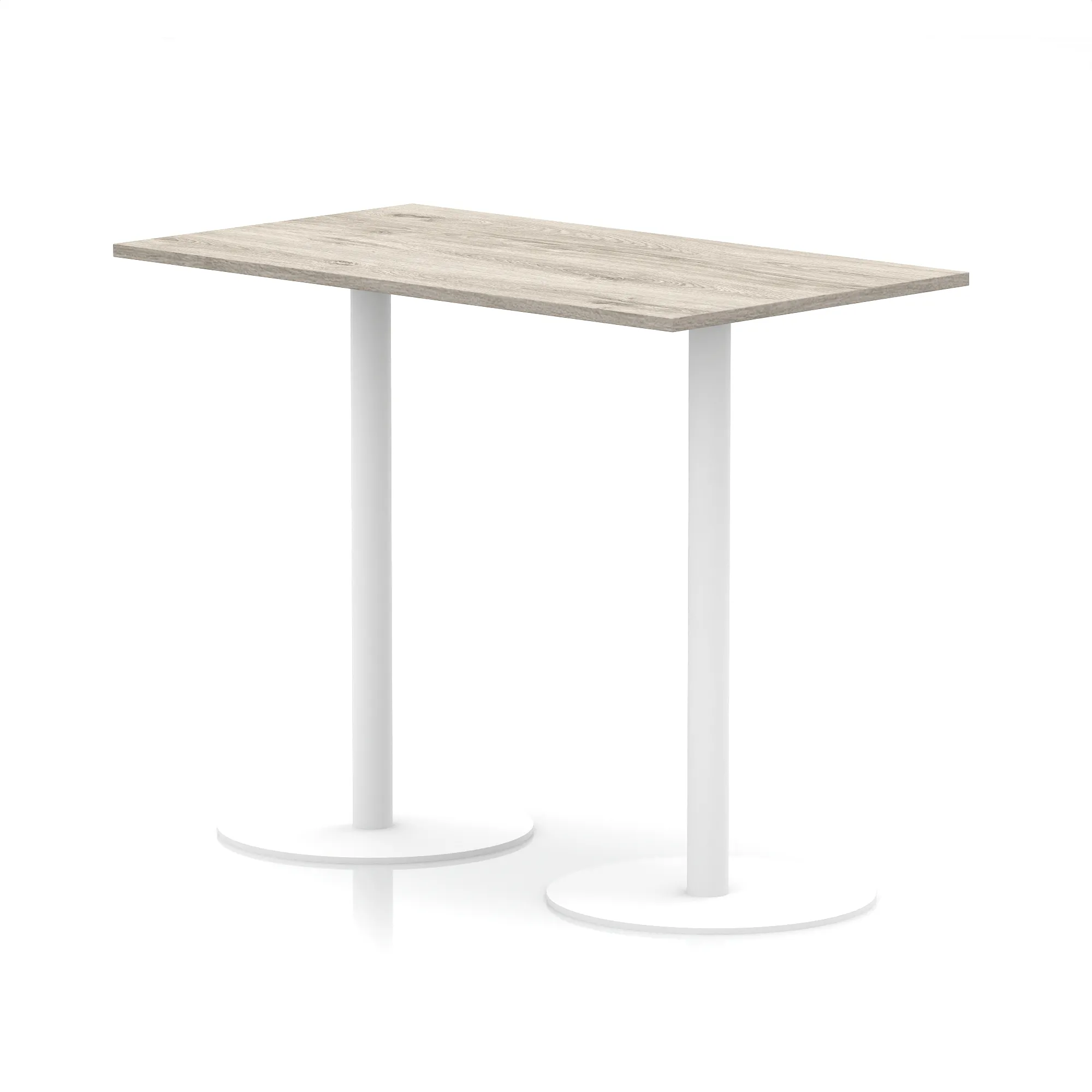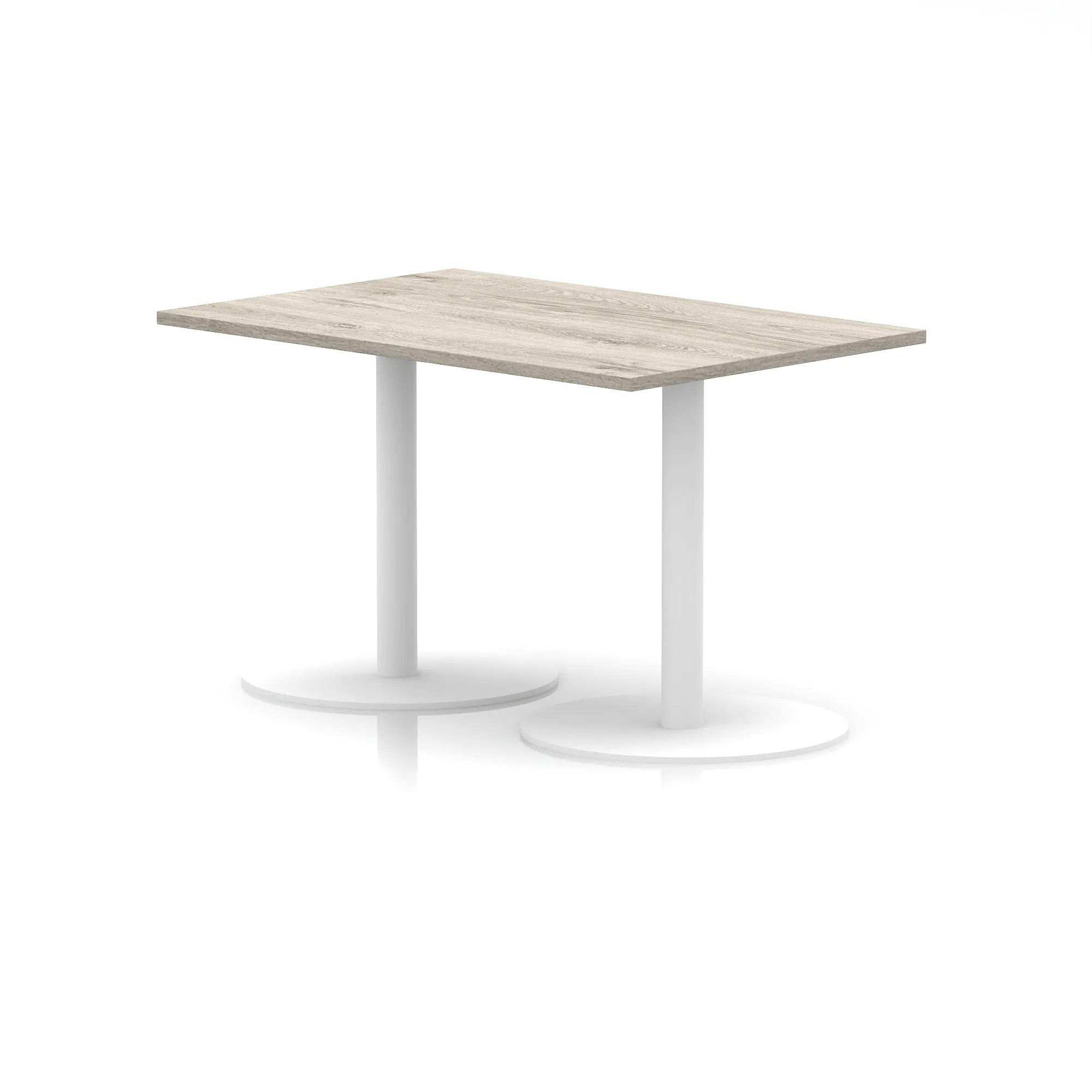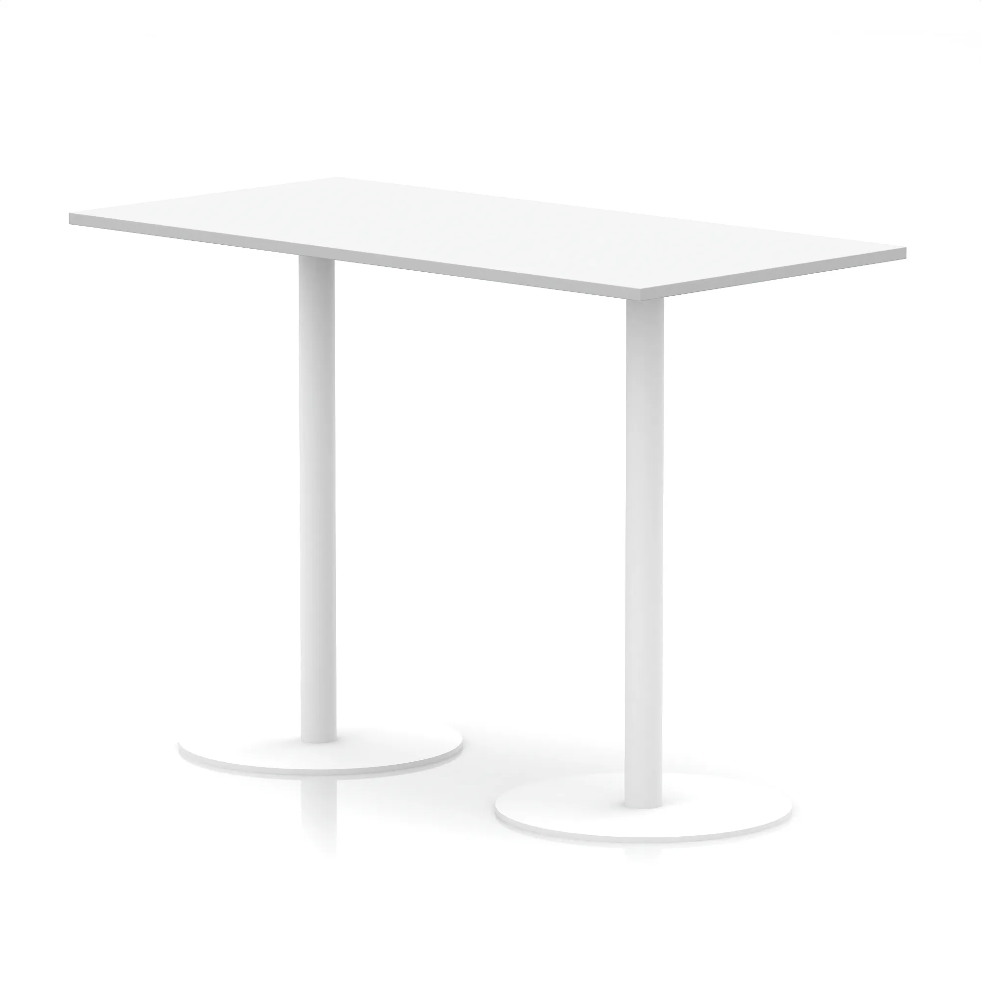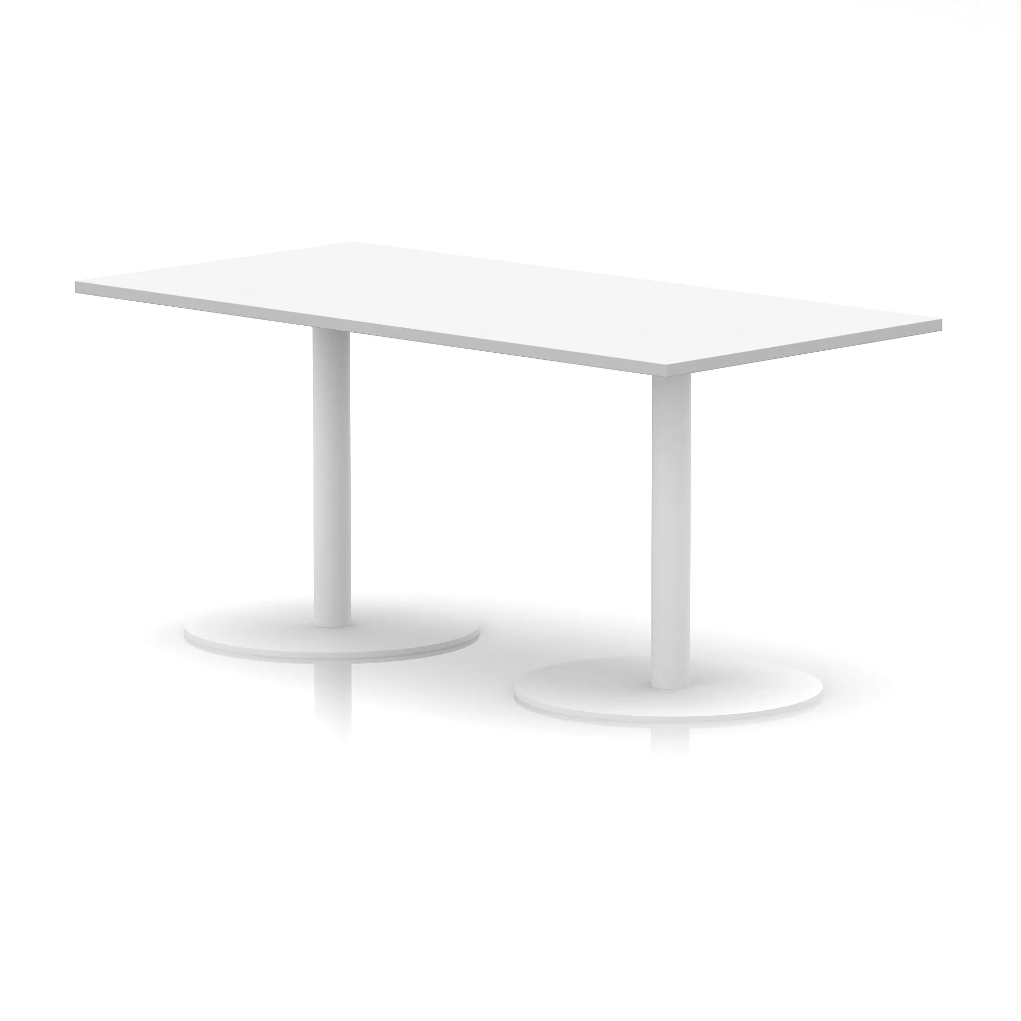 25mm thick desk top profile | Dual, brushed stainless steel effect circular base (580mm diameter) | Brushed stainless steel pillars (76mm diameter) | Weighted base provides stability | Two part bolted frame system