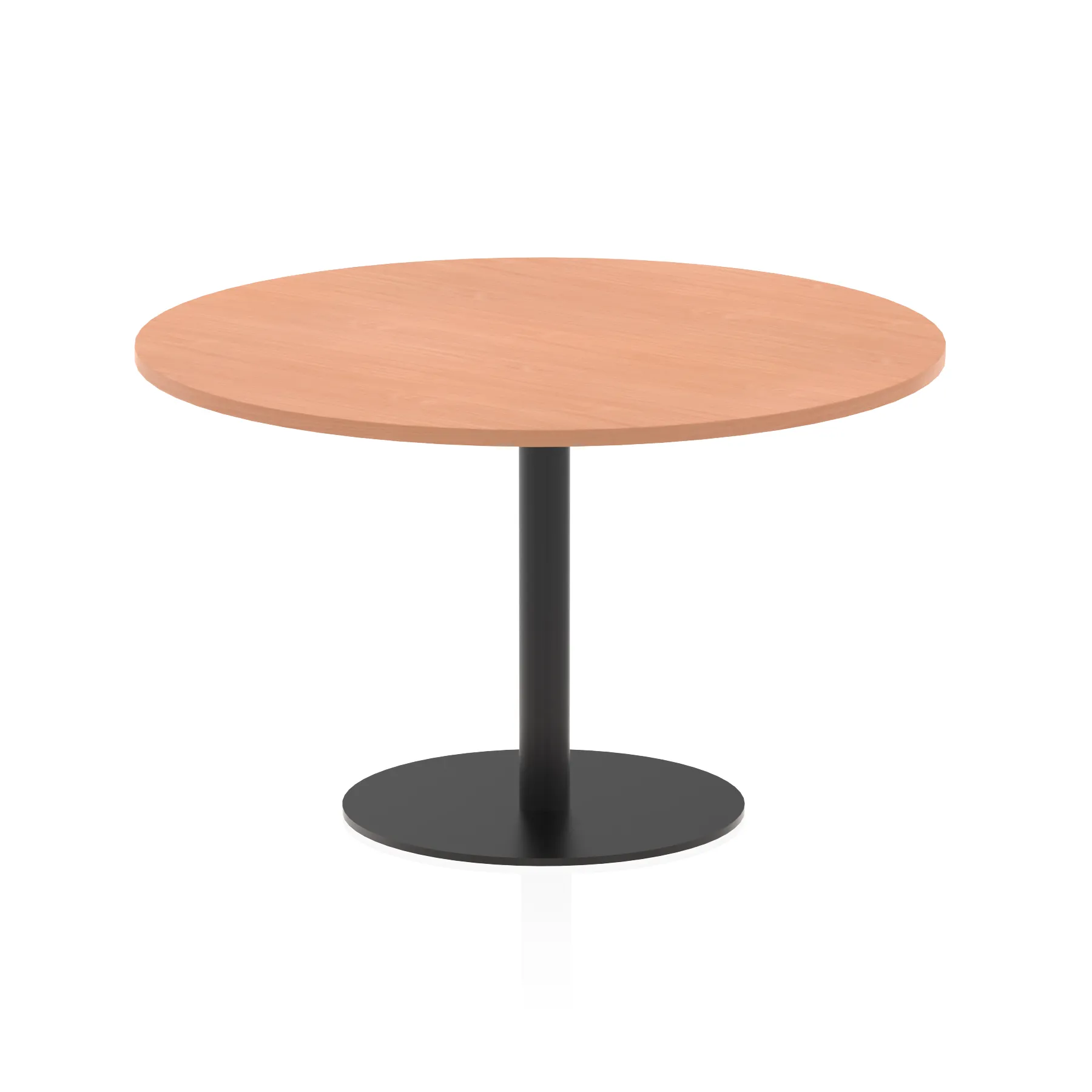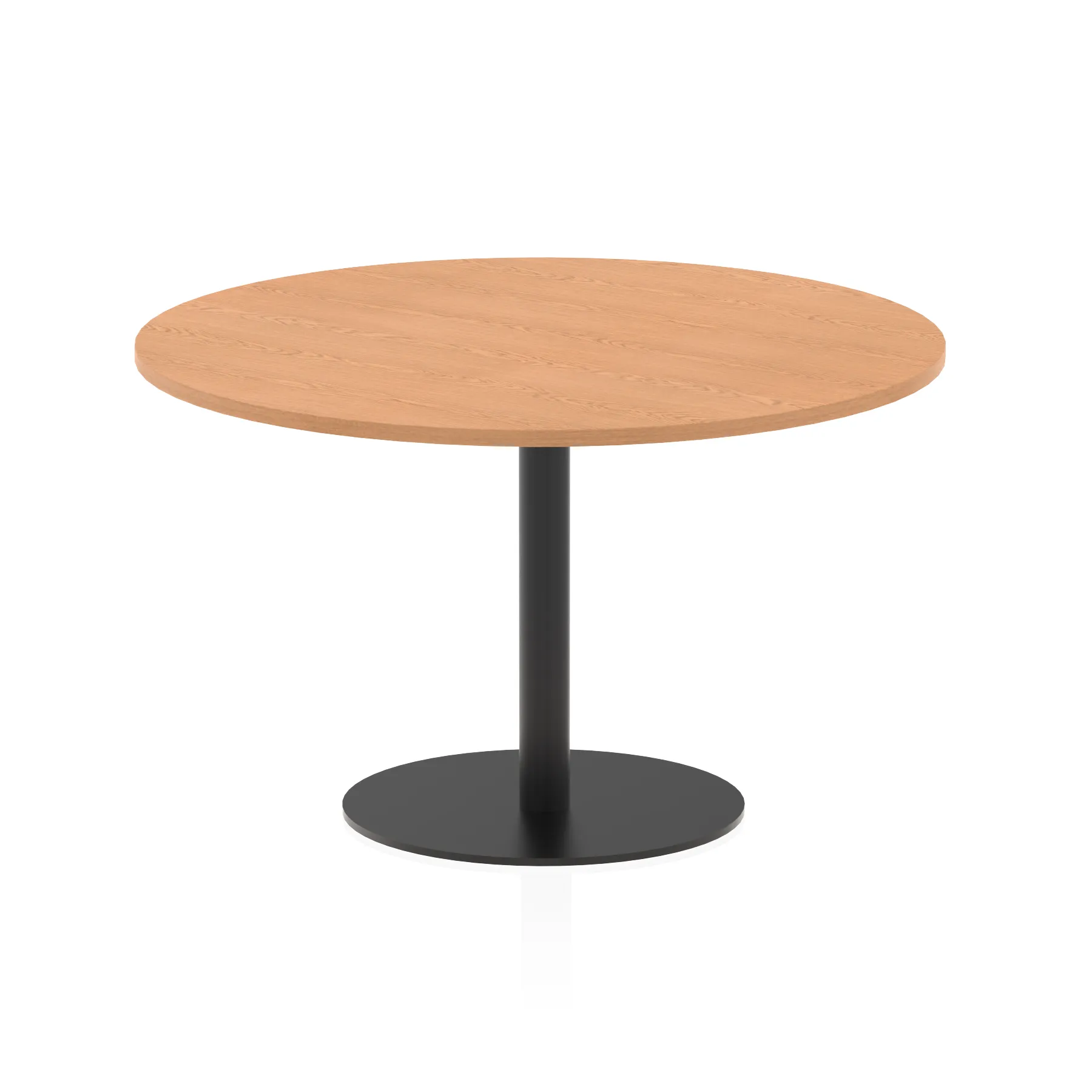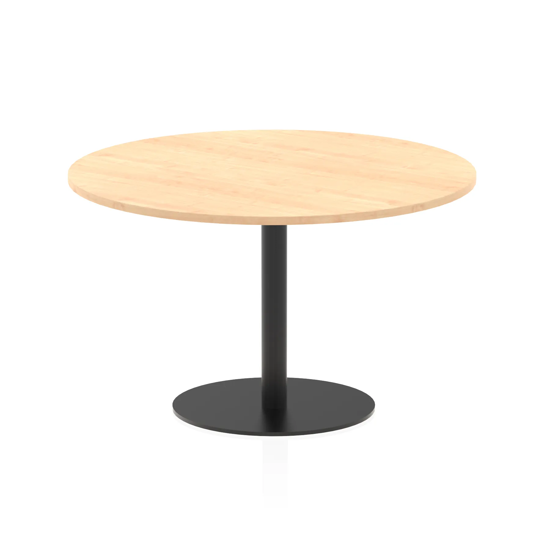25mm thick desk top profile | Brushed stainless steel effect circular base (580mm diameter) | Brushed stainless steel pillars (76mm diameter) | Weighted base provides stability | Two part bolted frame system