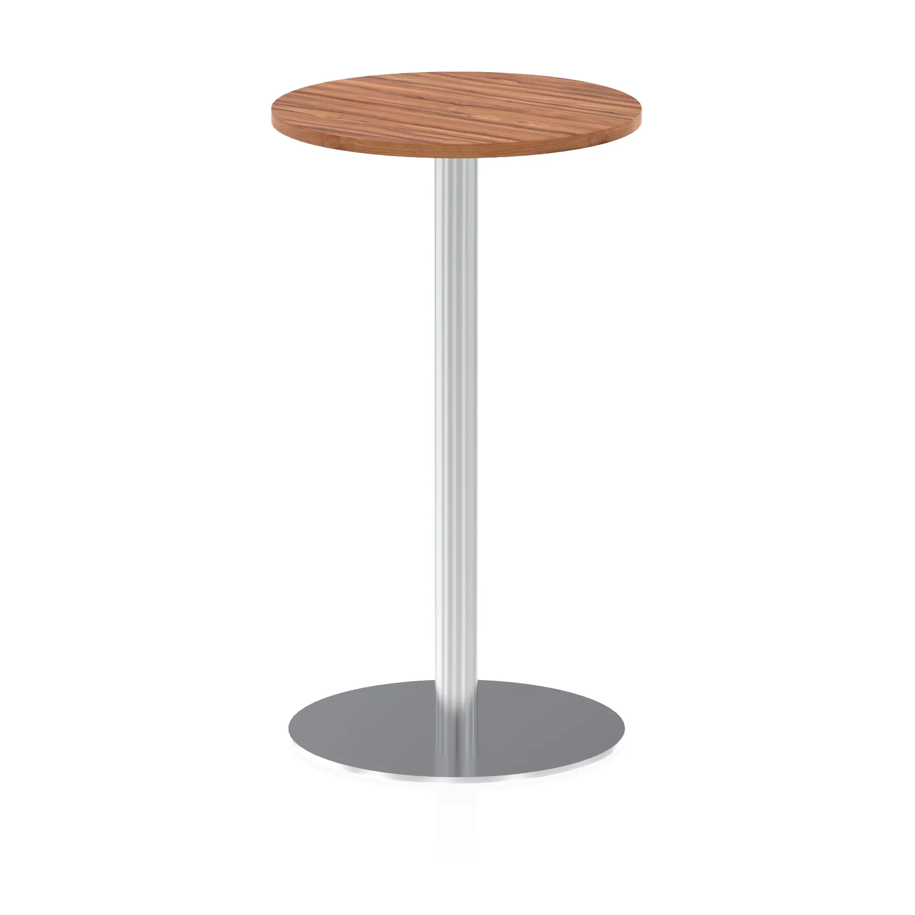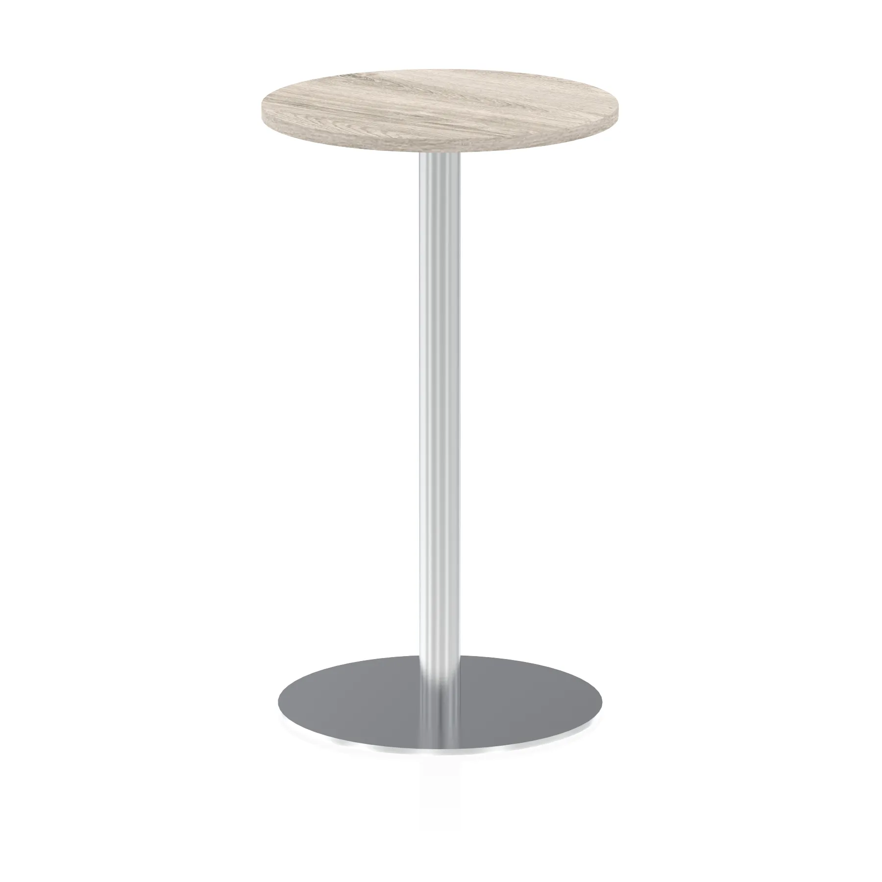 25mm thick desk top profile | Brushed stainless steel effect circular base (580mm diameter) | Brushed stainless steel pillars (76mm diameter) | Weighted base provides stability | Two part bolted frame system