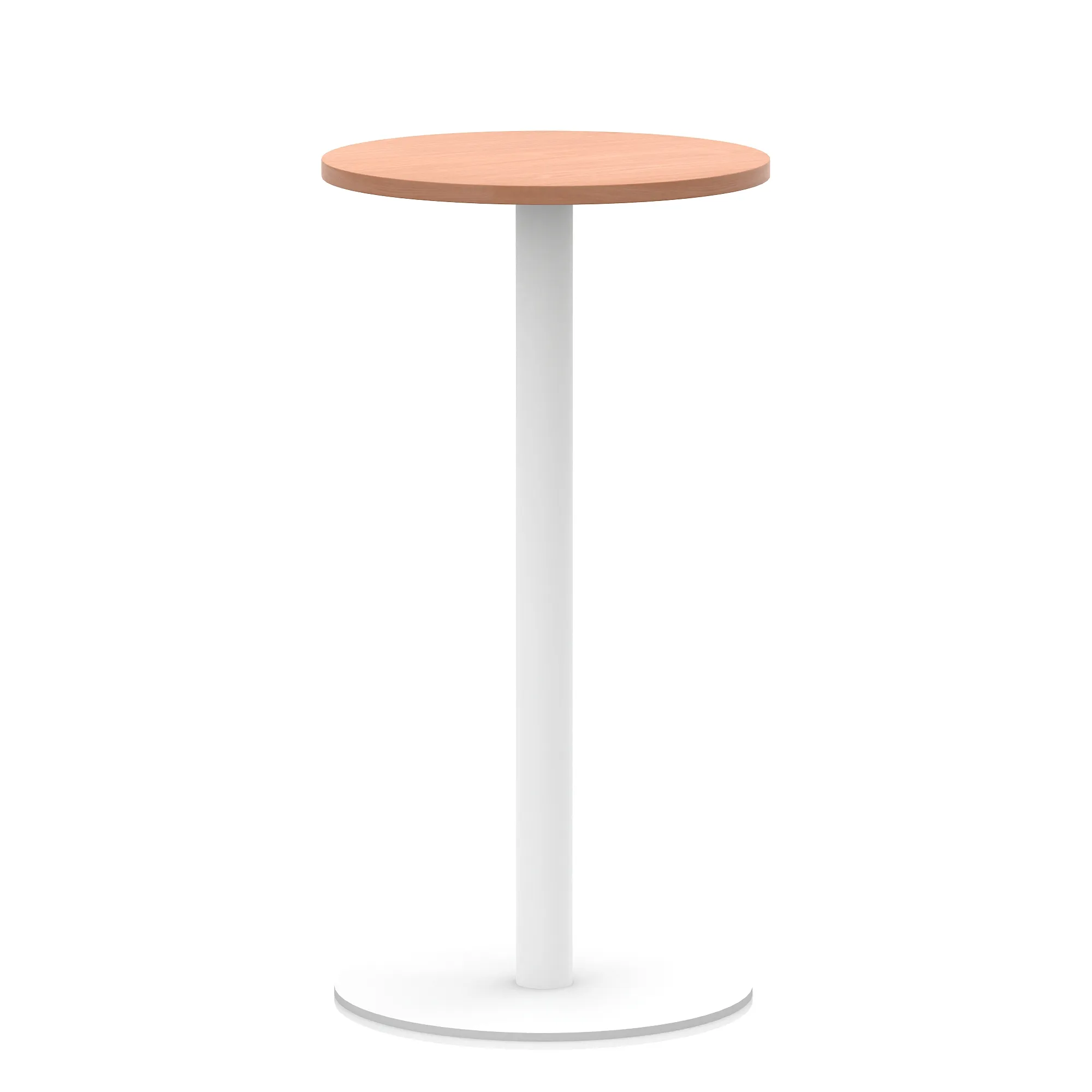 25mm thick desk top profile | Brushed stainless steel effect circular base (580mm diameter) | Brushed stainless steel pillars (76mm diameter) | Weighted base provides stability | Two part bolted frame system