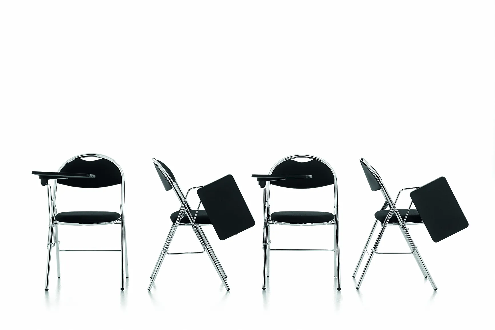 A foldaway writing tablet with a wipe clean polymer surface that is easily fitted to the Milan Folding chair (Milan chair sold separately).