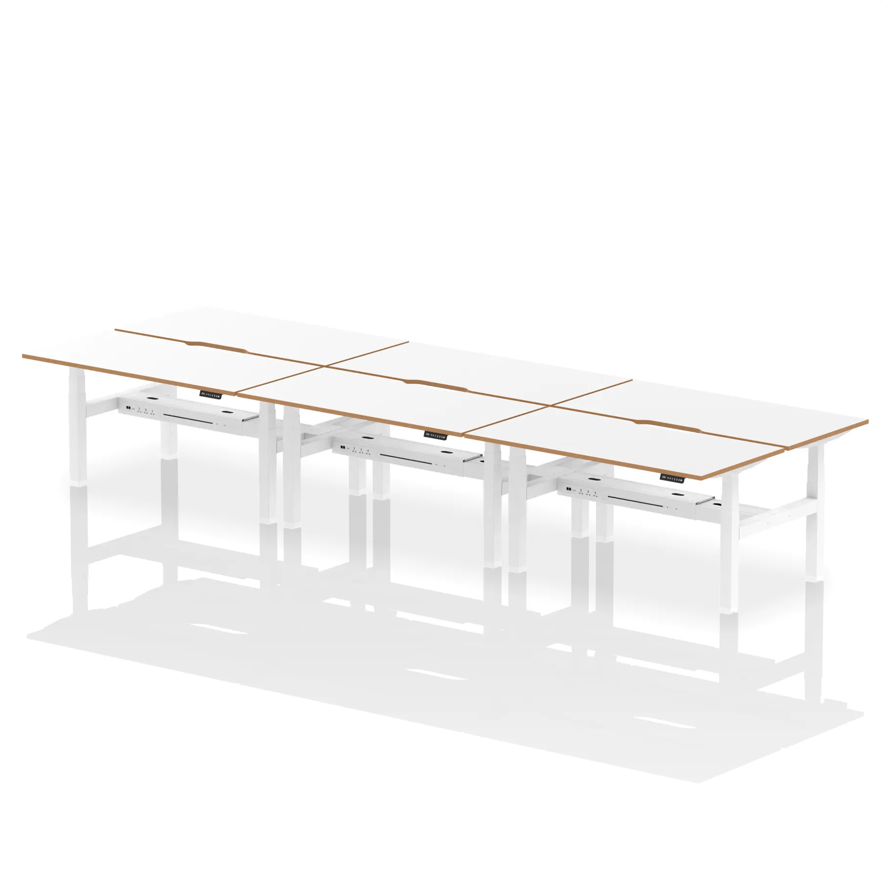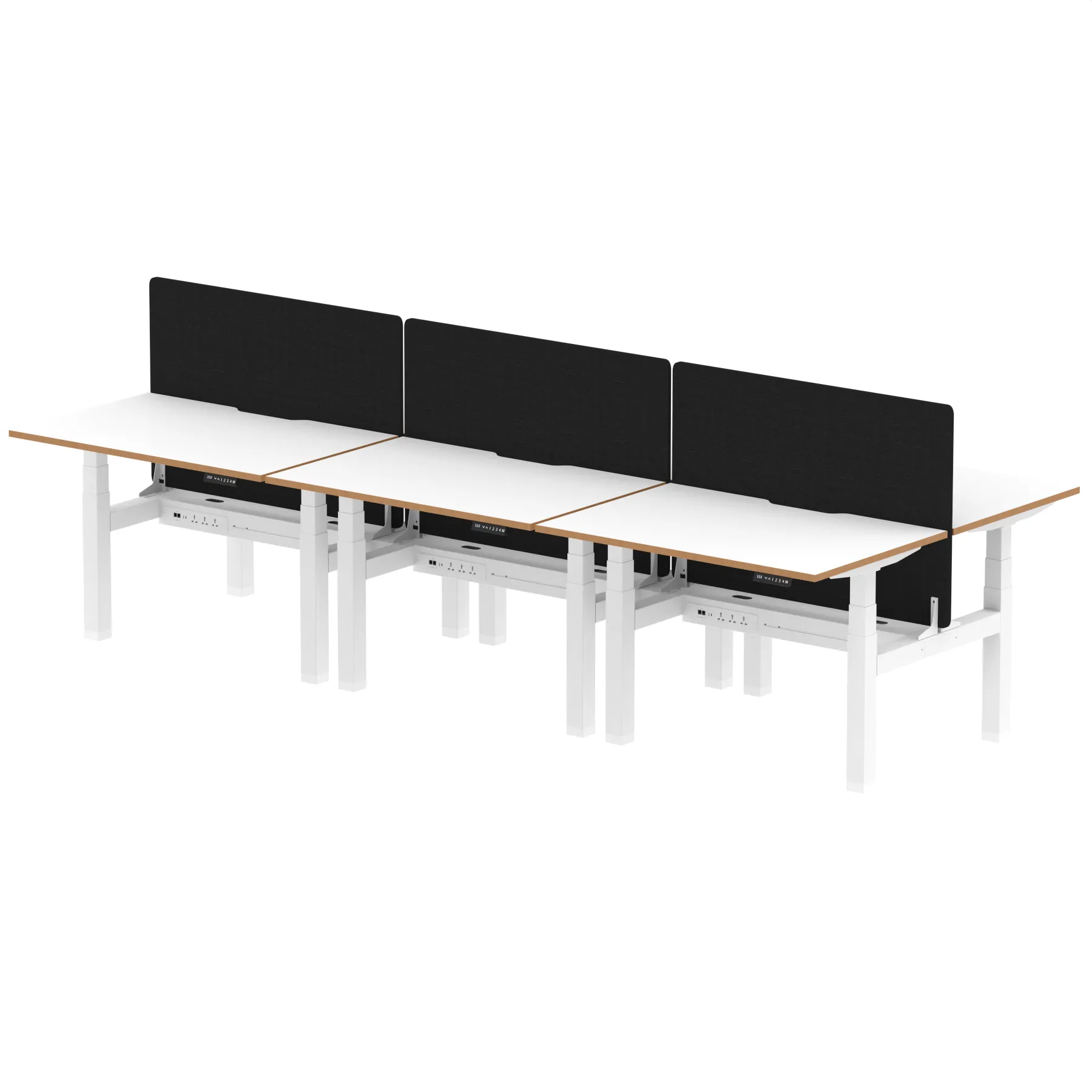 • Integrated with three UK plug sockets, two data ports, a USB-C and a USB port on each desk