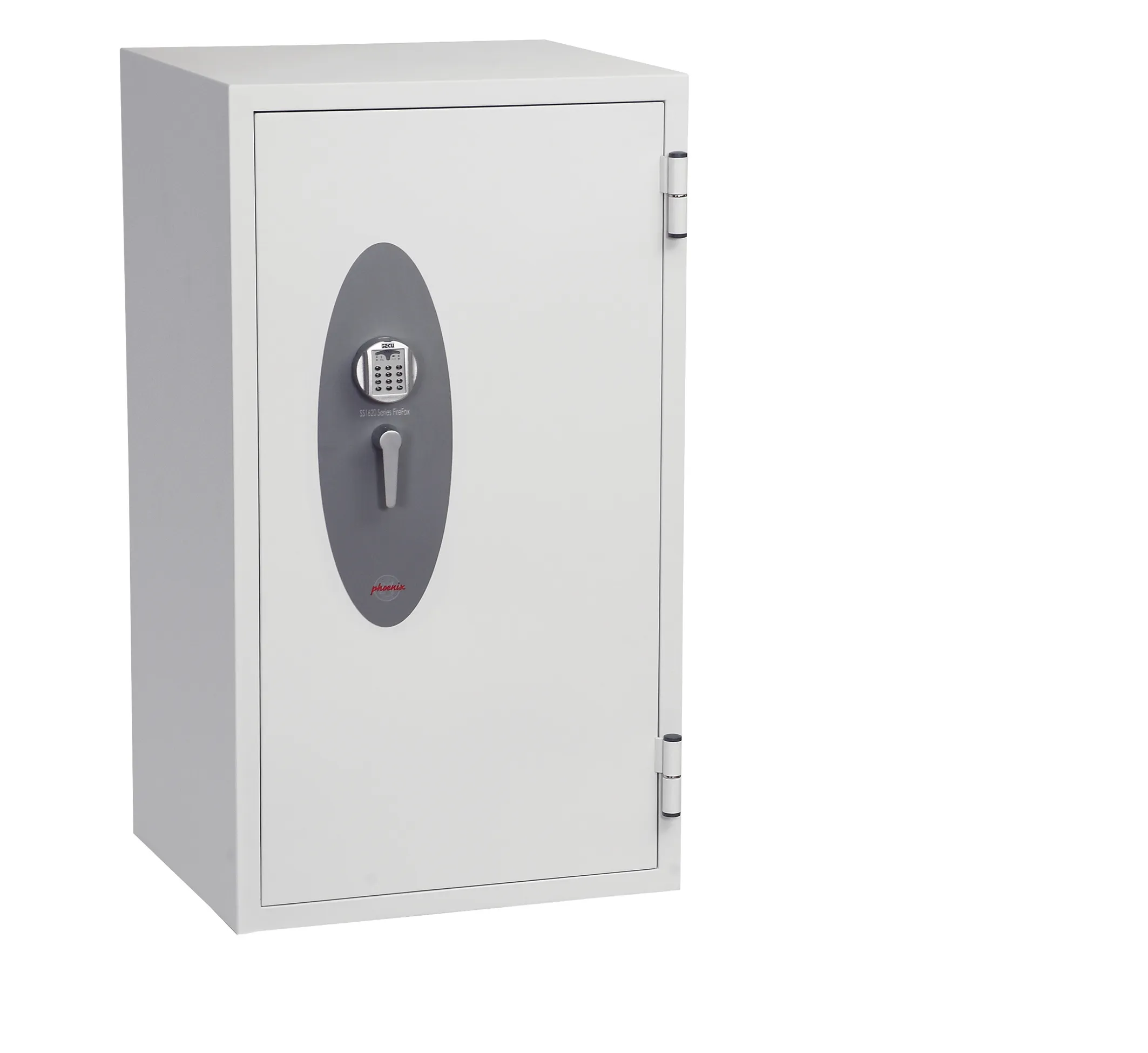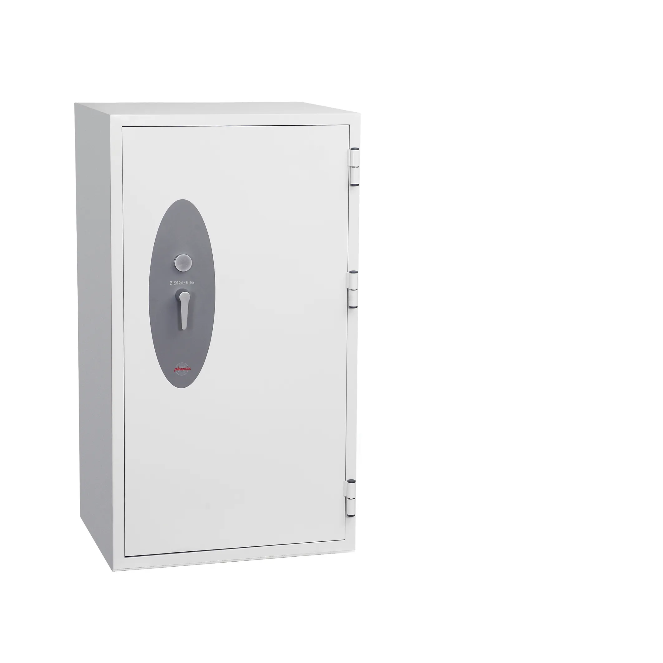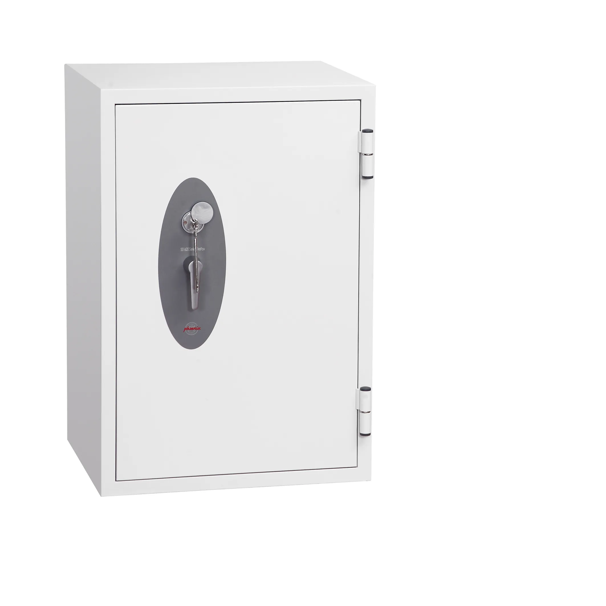 SECURITY PROTECTION – Tested to the prestigious European S2 Security standard (EN14450 ECB.S Certified) giving cash cover of £4,000 or valuables cover of £40,000 | APPROVALS – UK Police approved (Secured by Design scheme) and the Association of Insurance Surveyors (AiS) | FIRE PROTECTION (PAPER) – Tested to the Swedish NT Fire 017-120 Paper standard, providing 120 minutes fire protection for paper documents | FIRE PROTECTION (DIGITAL MEDIA) – Tested to MTC – DIP120 – 60DM fire test standard, providing 60 minutes fire protection for digital media, DVD’s, USB memory sticks and hard drives | FEATURES – Internal lockable steel drawer unit and supplied with 2 height adjustable shelves | DROP TEST – Fire and impact tested from 9.1 metres for resistance to the impact of falling through the burning floors of a building | CONSTRUCTION – Double wall construction with high grade concrete infill to provide both fire and burglary protection | FIXING – Ready prepared for floor fixing, with fixing bolts for concrete supplied | COLOUR – Finished in a high quality scratch resistant White paint RAL9003 | Suitable for storage of controlled drugs whose active ingredients do not exceed 500 grams